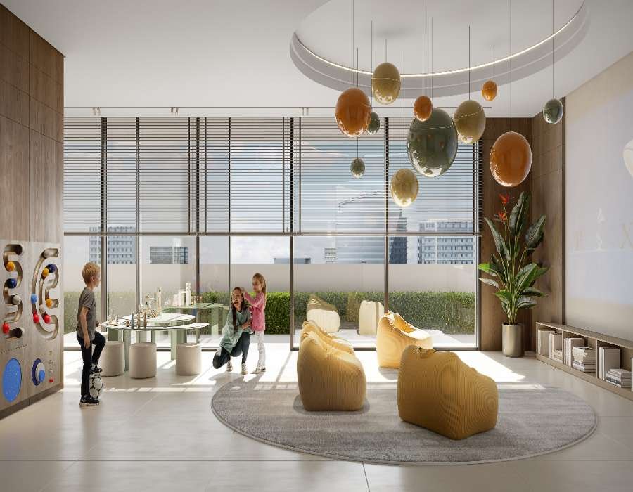 Für Familien gibt es einen Kinderspielbereich und ein spezielles Kinderspielzimmer, in dem sich die Kleinen austoben können. Der Lounge-Bereich im Freien und die angelegten Gärten bieten den Bewohnern einen ruhigen Rückzugsort, um sich zu entspannen und Kontakte zu knüpfen. Darüber hinaus gibt es ein Clubhaus für gesellschaftliche Veranstaltungen, ein Spielzimmer und sogar ein privates Kino zur Unterhaltung.