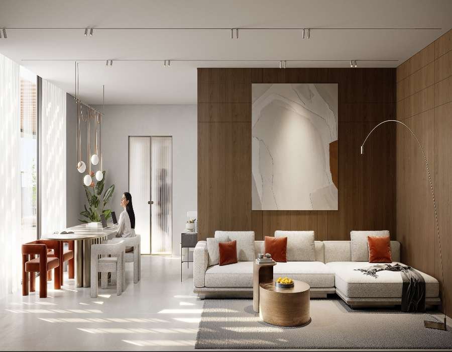 Willkommen in Verdania 3 von Object 1, das sich im Dubai Land Residence Complex (DLRC) befindet. Wenn Sie dieses Apartment mit einem Schlafzimmer und einem Dienstmädchenzimmer betreten, werden Sie von einem wunderschön gestalteten Wohnbereich