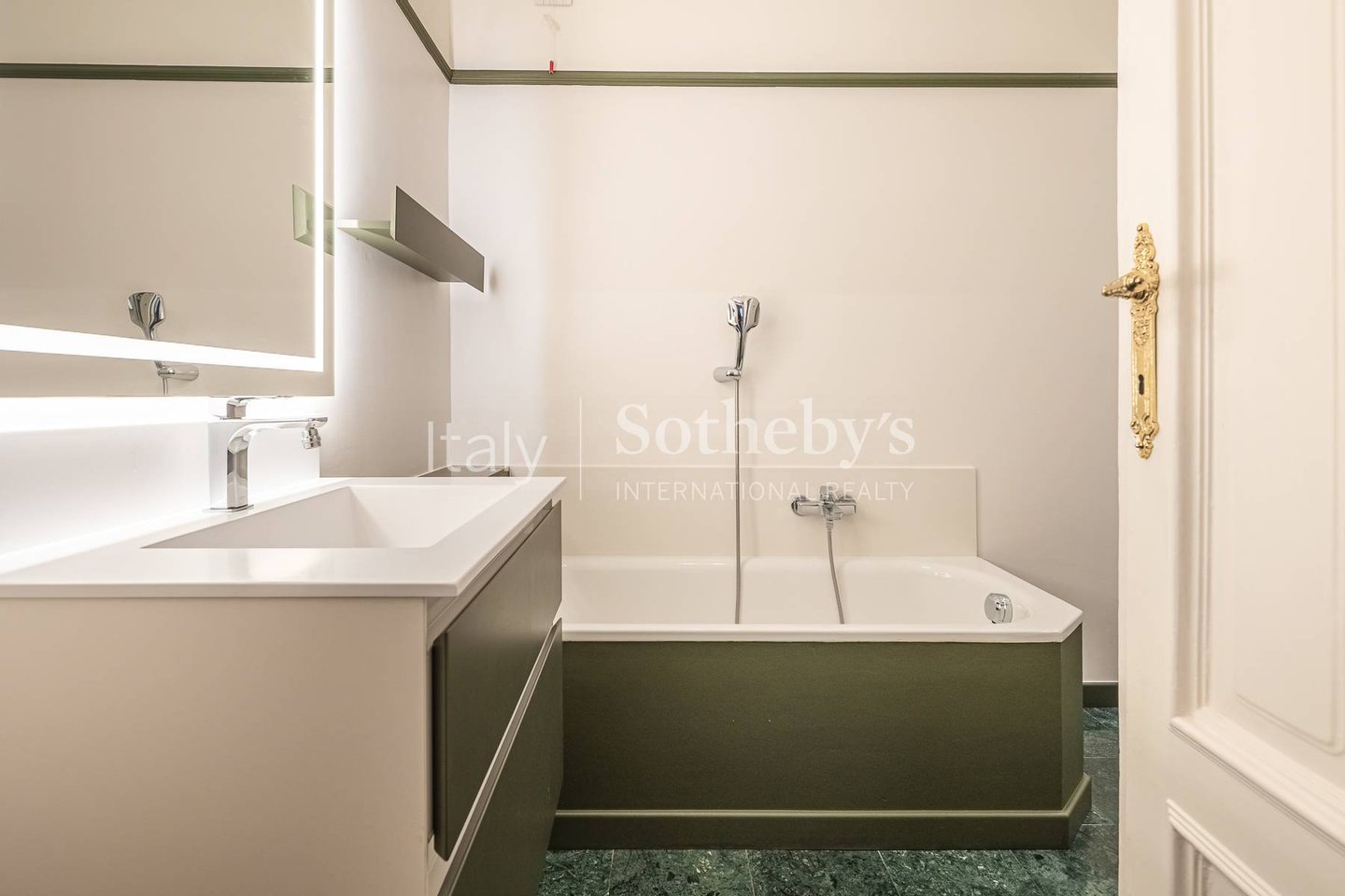 In einem eleganten, repräsentativen Altbau mit Portierservice, gelegen in der prestigeträchtigsten Wohngegend Mailands, zeichnen sich diese großzügige Dreizimmerwohnung von über 160 m² durch weitläufige, gut aufgeteilte Räume und hochwertige