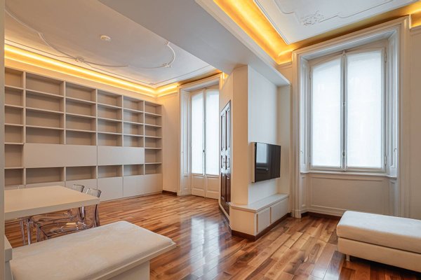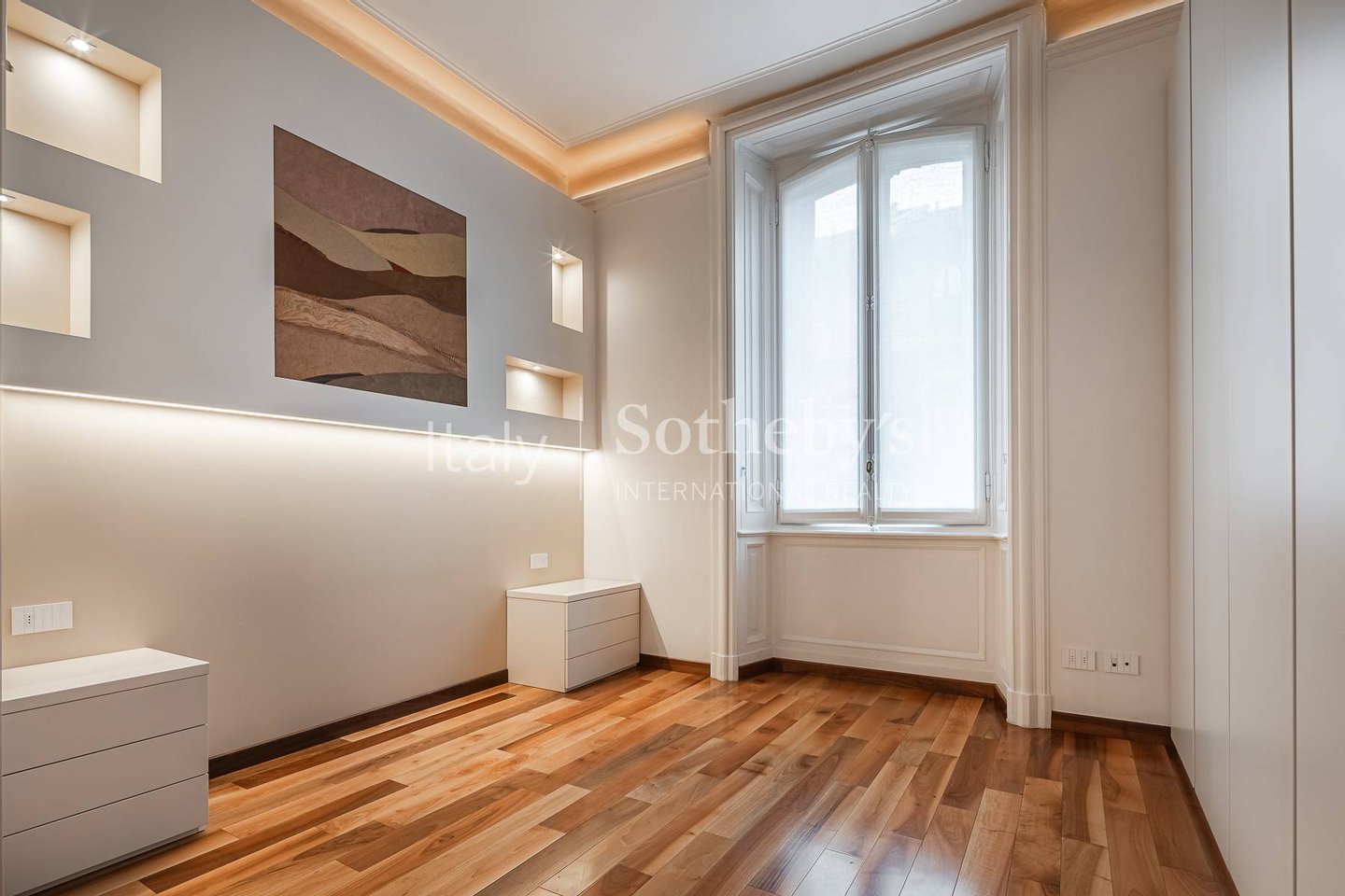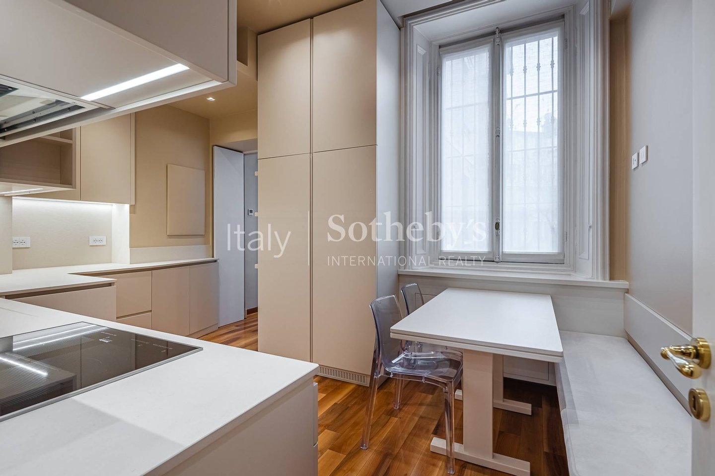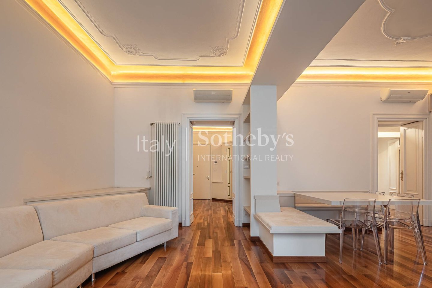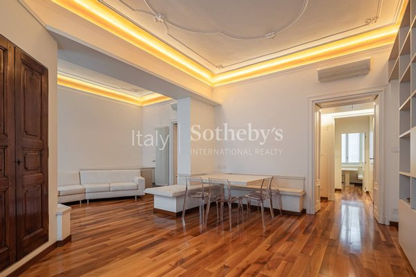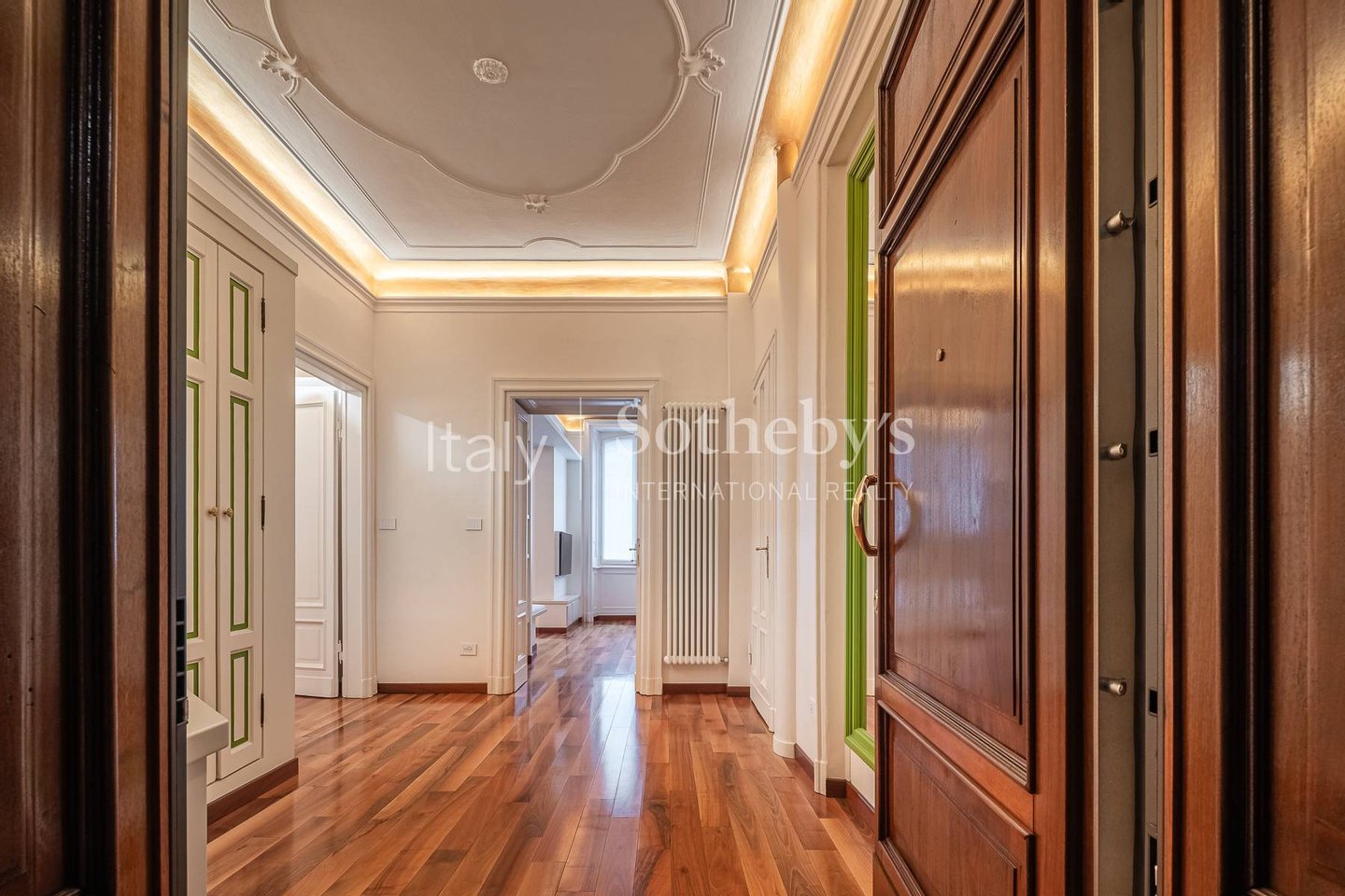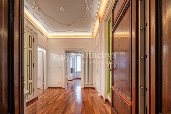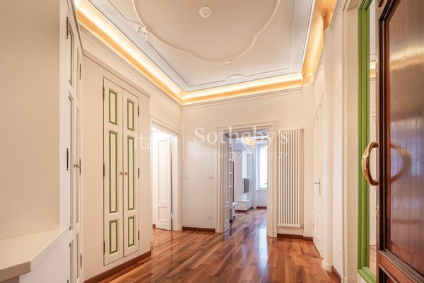 In einem eleganten, repräsentativen Altbau mit Portierservice, gelegen in der prestigeträchtigsten Wohngegend Mailands, zeichnen sich diese großzügige Dreizimmerwohnung von über 160 m² durch weitläufige, gut aufgeteilte Räume und hochwertige