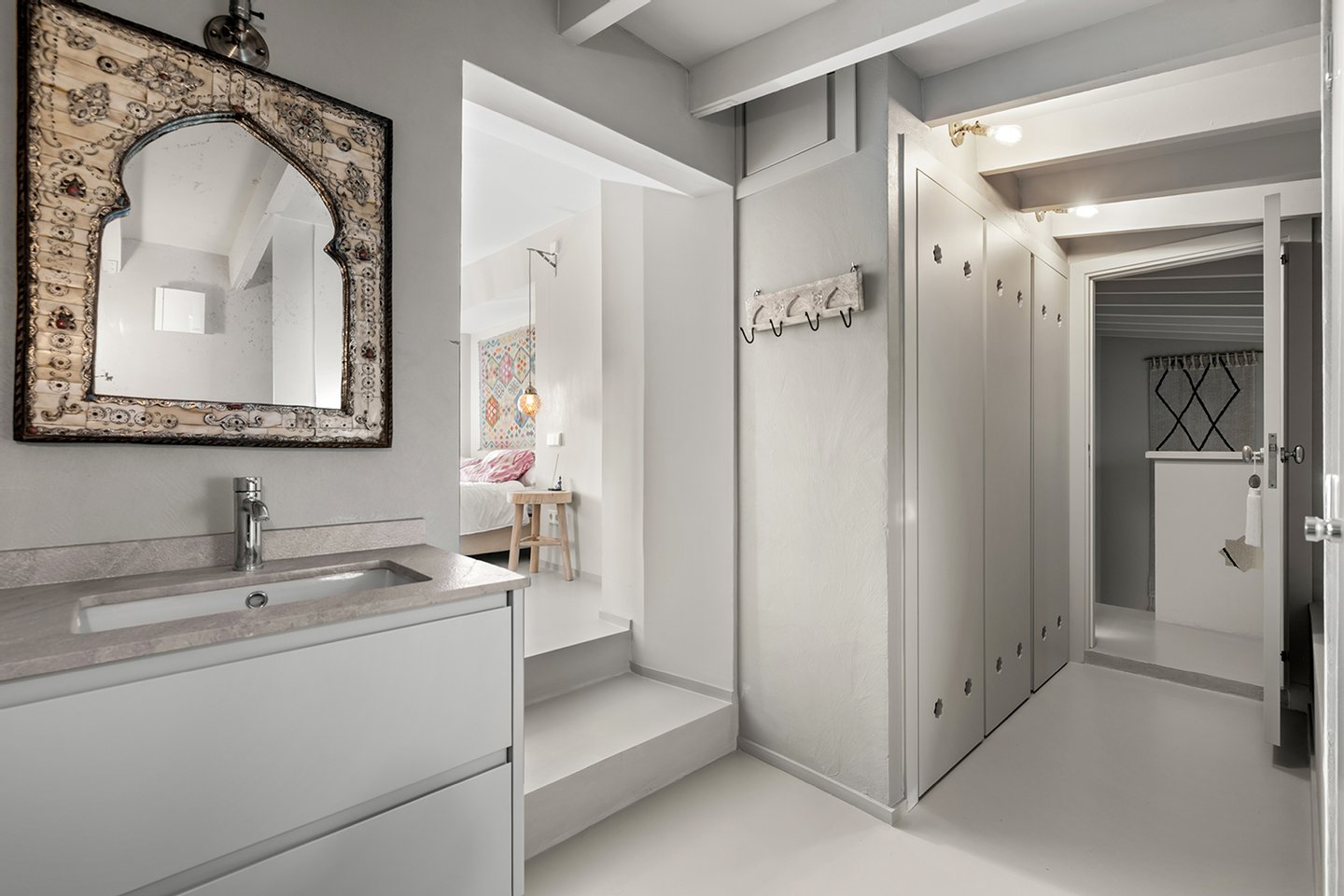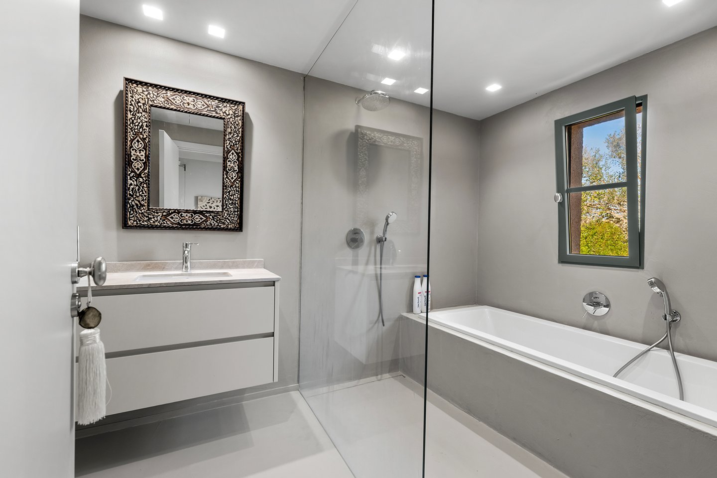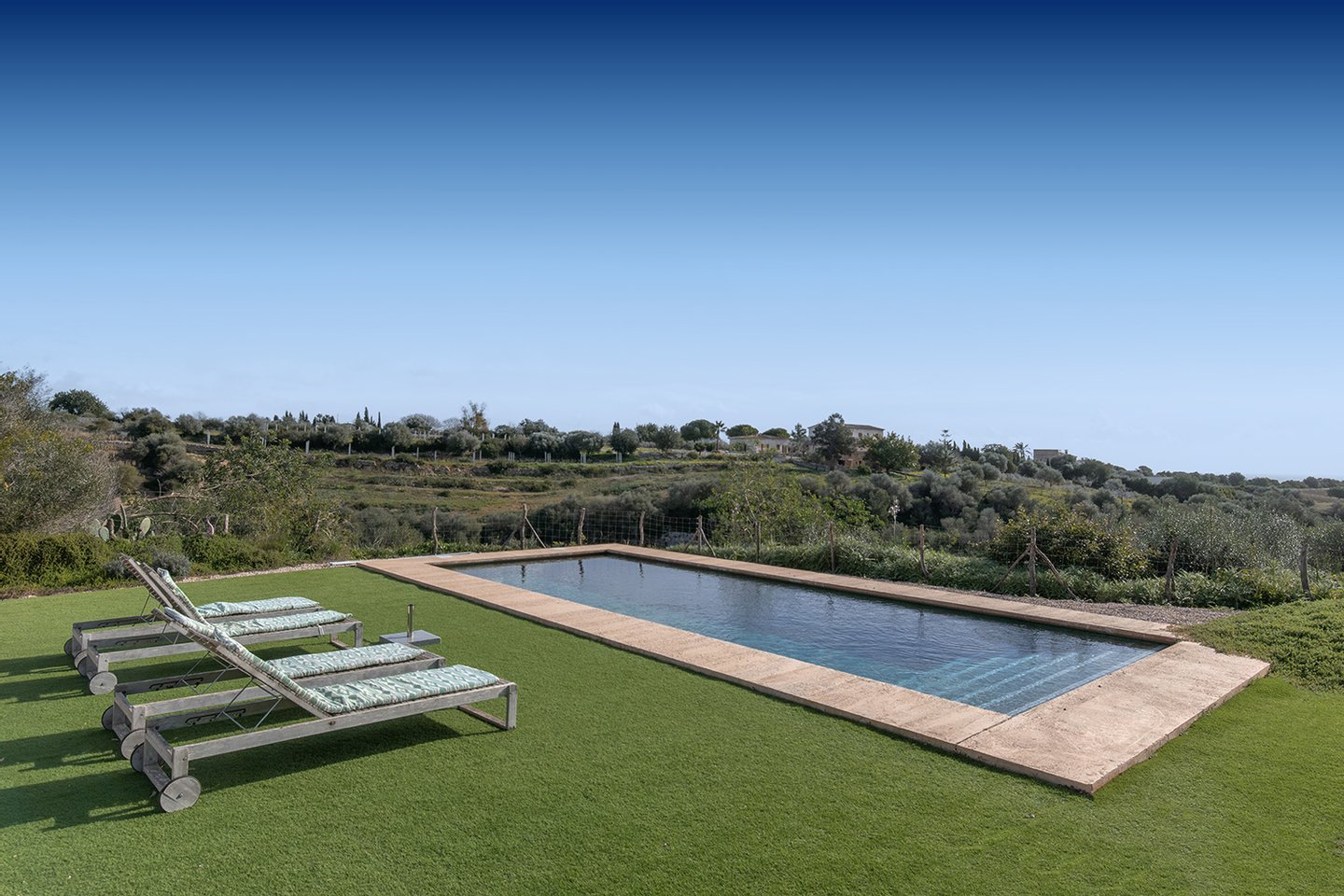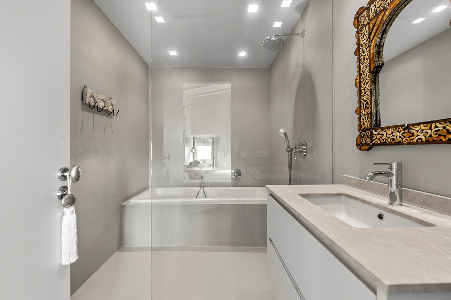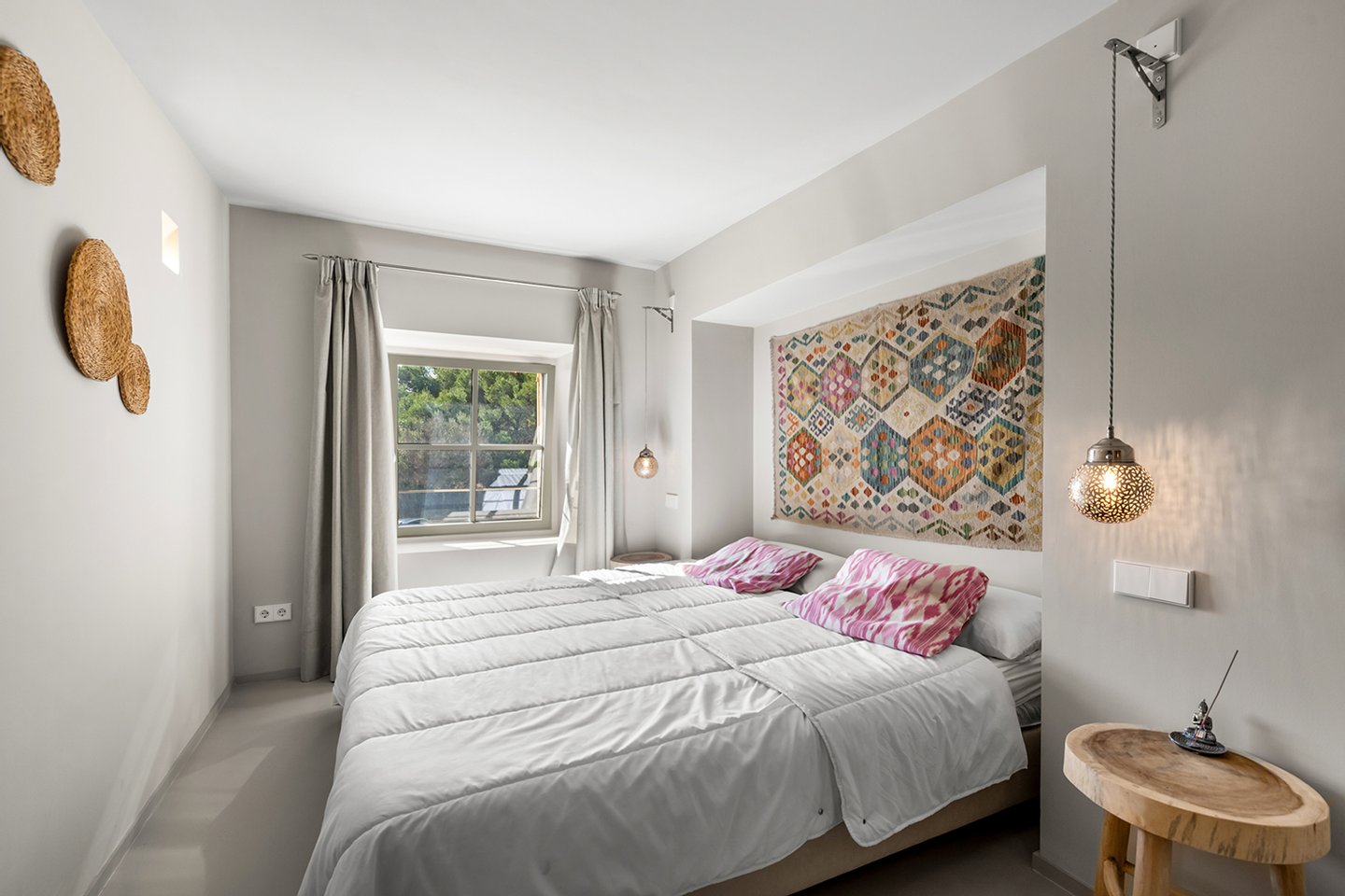 Im Inneren begeistert das Anwesen mit edlen Mikrozementböden, hellen Holzbalken und einer warmen, stilvollen Atmosphäre. Der gemütliche Wohnbereich bildet das Herzstück des Hauses und geht fließend in den Essbereich über, der sich harmonisch in das Gesamtbild einfügt. Die moderne Küche ist vollständig ausgestattet und bietet direkten Zugang auf eine separate Terrasse. Die Finca verfügt über 4 Schlafzimmer mit jeweils Badezimmer en Suite.