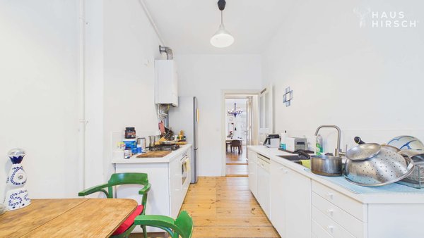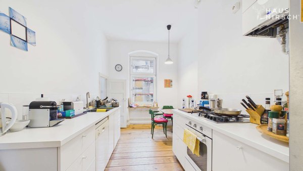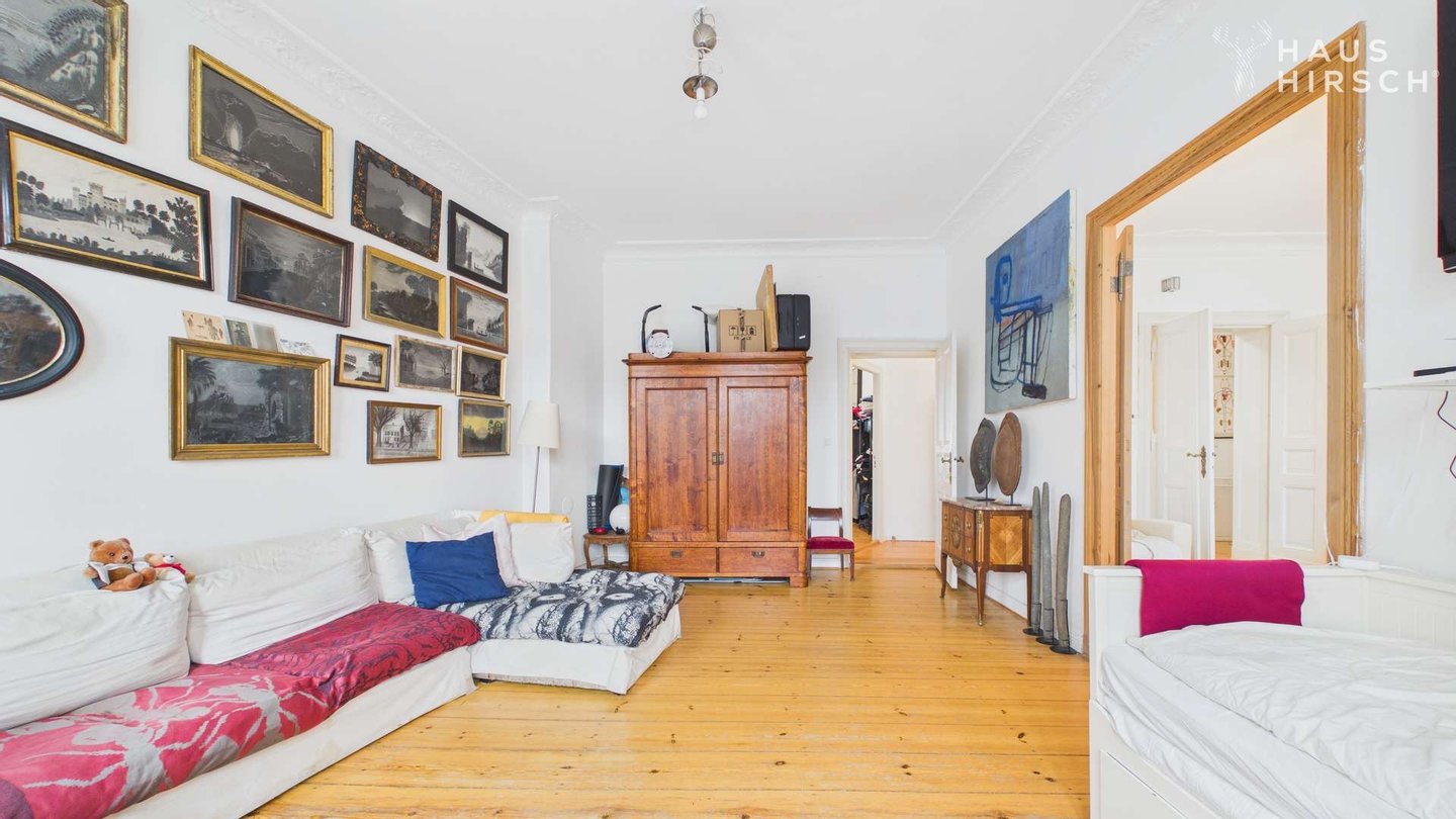 Die Wohnung besticht durch eine hochwertige und wohnliche Ausstattung, die den Charme des Altbaus mit modernem Komfort verbindet. Die Wohnräume sind mit originalen Dielenböden versehen, die Wärme und Gemütlichkeit ausstrahlen und gleichzeitig