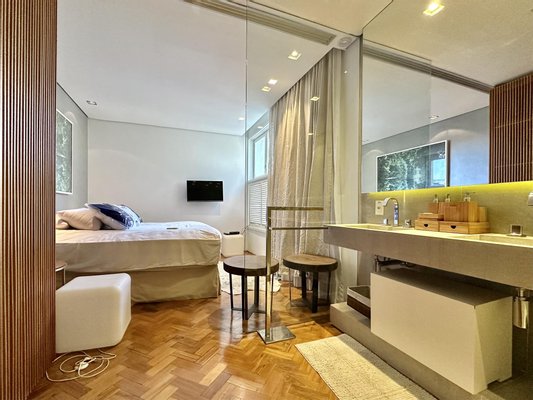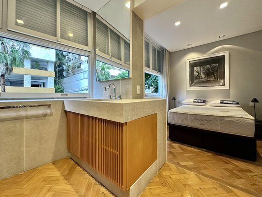 Im dritten Stock ragt der Wohnbereich hervor: integrierter Wohn-Ess-Bereich, voll ausgestattete Küche und Terrasse, die den perfekten Rahmen zum Unterhalten bietet, während man offene Stadtansichten genießt, einschließlich des Corcovado (Christ the Redeemer) und der Lagoa. In einem hochwertigeren Gebäude mit 24-Stunden-Concierge-Service und optionalem überdachten Parkplatz gelegen, ist dieses Triplex-Penthouse in Alto Leblon eine ausgezeichnete Chance auf dem Immobilienmarkt Rio de Janeiros.