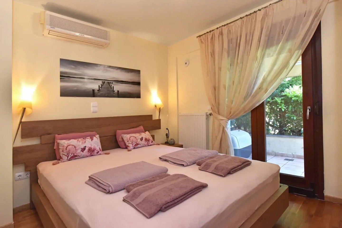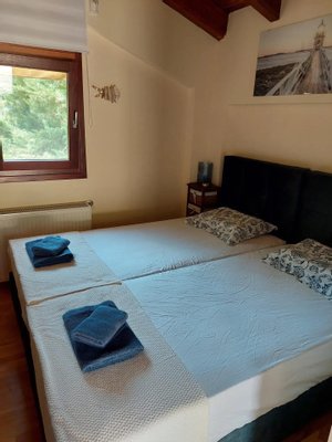 Luxuriös und ruhig, voll ausgestattete Villa mit großem Garten und Pool in der privilegiertesten Gegend von Chalkidiki. Sunny Villa wird hier seit 2 Jahren über Airbnb und Booking vermietet und erzielt im Durchschnitt über 30.000 Euro pro Jahr (über 5% Rendite). Sie liegt näher am Strand und am Hafen als alle anderen Villen in Sani (5 Gehminuten über flachen Weg). Die Villa hat 3 Etagen mit 2 geräumigen Wohnzimmern, 2 Balkonen, 3 bequemen Schlafzimmern, 3 Bädern und voll ausgestatteter Küche. Umgeben von üppiger Natur, die den Geist beruhigt und die Sinne entspannt. In der Nähe des schönen 1000 Jahre alten Kiefernwaldes und des schönsten Strandes von Chalkidiki. Sie können Sunny Villa mit einem Miet-Kauf-System mieten. Falls Sie Interesse am Kauf haben, informieren Sie uns, damit wir Ihnen einen Mietpreisnachlass anbieten. Sunny Villa ist von einem schönen Garten umgeben, der viele Schattenplätze und gute Privatsphäre bietet. Direktzugang zu einem privaten Stellplatz und Pool vorhanden. Die Villa hat 3 Etagen. Im Untergeschoss gibt es einen großen Wohnsalon mit Smart-TV und Magie-Fernbedienung (Netflix inklusive), ein Bad und Abstellraum. Im Erdgeschoss gibt es einen Salon mit weiterer TV und Kabelkanälen, funktionierendem Kamin, ein Schlafzimmer mit Bad und privater Terrasse, voll funktionsfähige und ausgestattete Küche und 55 m² Terrasse. Vor der Villa, direkt gegenüber dem Pool. Im oberen Stock gibt es eine Galerie mit Schlafzimmer, Bad und 9 m² Balkon mit Blick auf den Pool. Die Villa ist kreativ eingerichtet. Die gesamte Villa ist aus Stein aus Lakkomaia gebaut und verleiht eine romantische Optik. Heizungssystem mit Ölheizung, elektrischer Heizkessel und Solarzellen. Es gibt 3 Klimaanlagen, LED-Beleuchtung bei Stromausfall, Wi‑Fi, Netflix, Satelliten- und Kabel-TV, Moskitonetz, 3 elektrische Markisen, 10 m² Holzlagerraum, Garten und 2 Parkplätze. Das gesamte Wasser, das in die Villa eingeht, wird von professionellem Filtersystem gefiltert und es gibt einen speziellen Trinkwasserfilter in der Küche unter dem Spülbecken. Wichtig! Eine Buchung kann erst bestätigt werden, wenn uns ein Foto der ersten Seite Ihres Reisepasses geschickt wird! Um von der Villa zum Strand zu gelangen, benötigen Sie nur 5 Gehminuten über eine völlig ebene Straße, die ausschließlich für die Häuser der Anlage vorgesehen ist. Sie finden sich direkt gegenüber der berühmten Anemos Beach Bar am Strand von Sani. Von dort können Sie zum berühmten Yachtenhafen von Sani und dem Resort laufen, das eine Vielzahl von Restaurants, Cafés, Bars und viele Spiel- & Sportaktivitäten für Kinder bietet.