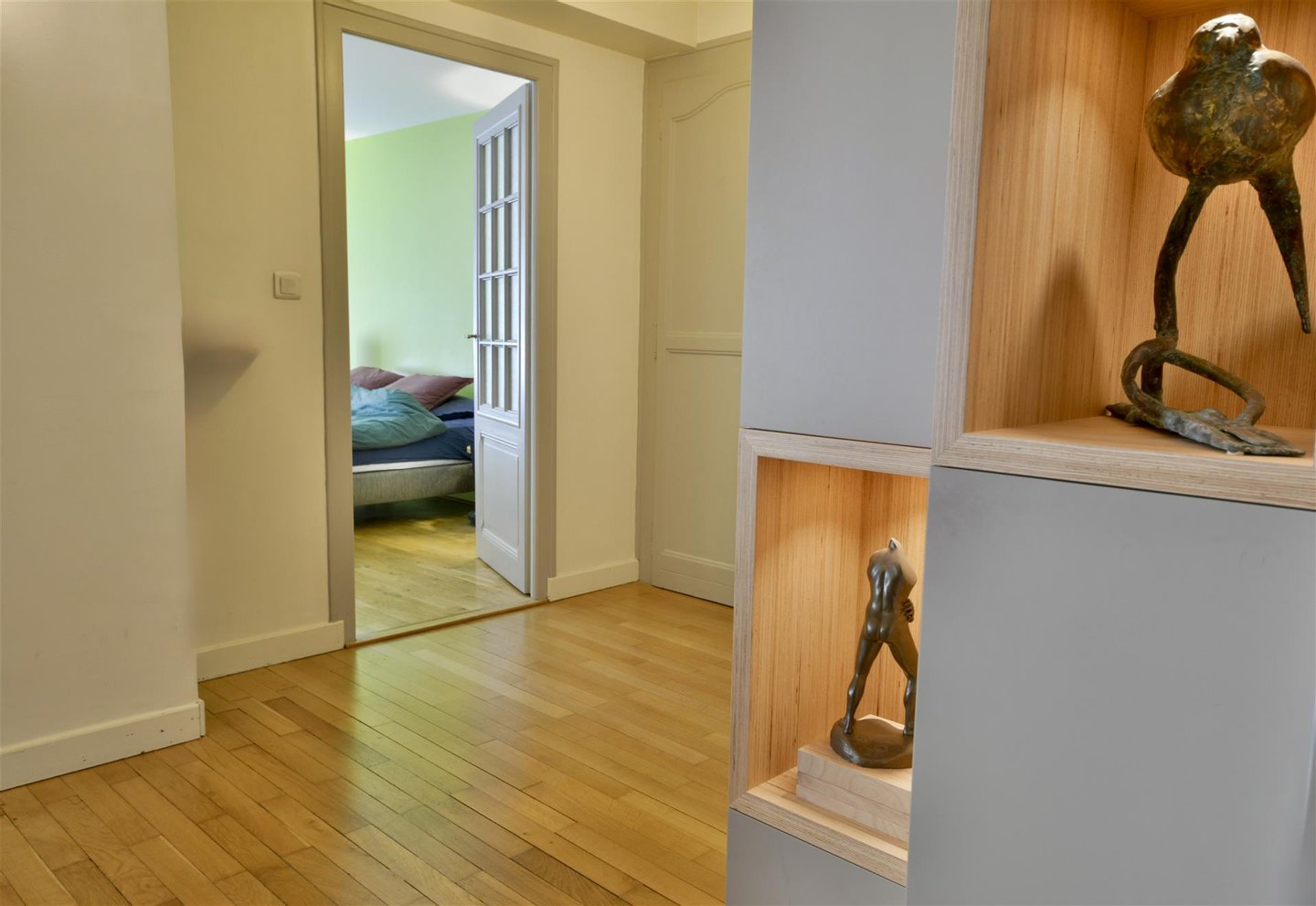 Diese geräumige 109 m² (Carrez-Gesetz) zwei-Zimmer-Wohnung verbindet subtil den Charme historischer Merkmale mit hochwertigen zeitgenössischen Oberflächen. Ein helles und raffiniertes Interieur.