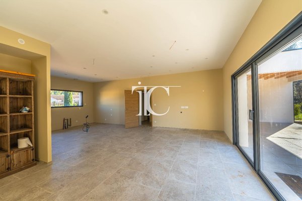 Sie besteht aus einem großen, lichtdurchfluteten Wohn-Esszimmer von 45 m² mit freiem Blick auf den Poolbereich ohne Gegenüber. Die Küche ist nach den Wünschen der zukünftigen Käufer noch anzupassen.