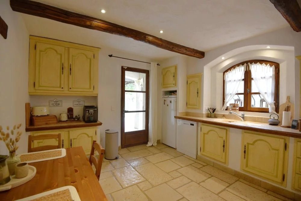 Die ausgestattete, funktionale und einladende Küche fügt sich nahtlos in den Geist des Hauses ein. Ein Arbeitszimmer ergänzt den Wohnbereich.