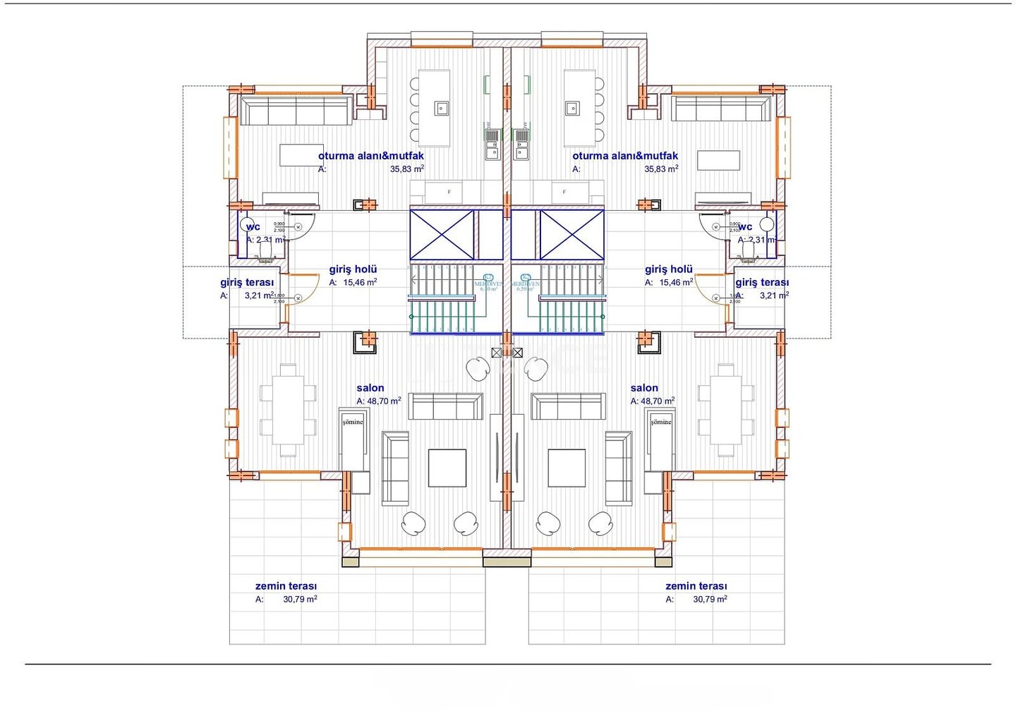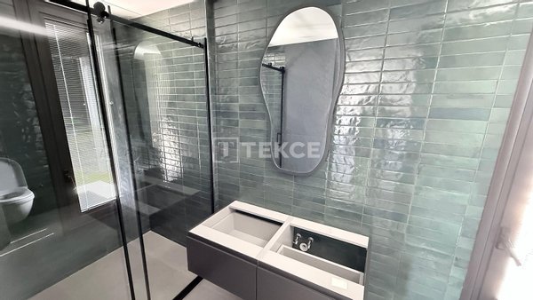 Doppelhaushälften zum Verkauf in einer prestigeträchtigen Gegend in İzmir Güzelbahçe & 13 Güzelbahçe ist einer der prestigeträchtigsten Bezirke entlang der Küste von İzmir. Er zeichnet sich durch seine Nähe zu Çeşme und Urla sowie durch seine gute Anbindung an das Stadtzentrum aus. Güzelbahçe ist eine ruhige und gehobene Wohngegend, die überwiegend aus Einfamilienhäusern und Flachbauten besteht. Mit seiner malerischen Küste, den Grünflächen, der frischen Luft und den renommierten Fisch- und Fleischrestaurants gilt es als eines der begehrtesten Viertel von Izmir. Darüber hinaus ist Güzelbahçe als eines der wichtigsten Bildungszentren der Stadt bekannt, da sich im Stadtteil Yelki etwa 220 verschiedene Bildungseinrichtungen befinden. & 13 Die Villen zum Verkauf in İzmir befinden sich 300 m vom Markt, 320 m von Parks, 350 m von Privatschulen und Cafés, 370 m von Sportschulen, 400 m vom Krankenhaus und 700 m von Supermärkten entfernt. Sie sind außerdem 16 km von Urla, 20 km vom Sığacık-Basar, 22 km vom Einkaufszentrum İstinyePark, 37,5 km vom Flughafen Adnan Menderes und 64 km von den mit der Blauen Flagge ausgezeichneten Stränden von Çeşme entfernt. & 13 Die Doppelhaushälften wurden auf einem 500 m² großen Grundstück erbaut und verfügen über einen privaten Pool und einen separaten Garten. Die Villen verfügen über offene Küchen und Innenräume, die mit hochwertigen Materialien gestaltet wurden. Jedes Zimmer hat ein eigenes Bad, außerdem gibt es eine Duschkabine, eine Waschküche, eine Speisekammer, einen Kamin und ein Ankleidezimmer. Es wurden Stahltüren, Aluminium-Glas-Fenstersysteme, Marken-Laminat- und Keramikbodenbeläge sowie hochwertige Küchenschränke und Innentüren ausgewählt. Darüber hinaus wurde der Komfort durch zahlreiche Annehmlichkeiten wie eine klimatisierte Heizungs- und Kühlungsanlage, eine Sauna und einen Hausmeisterraum erhöht.& 13 ADB-00210