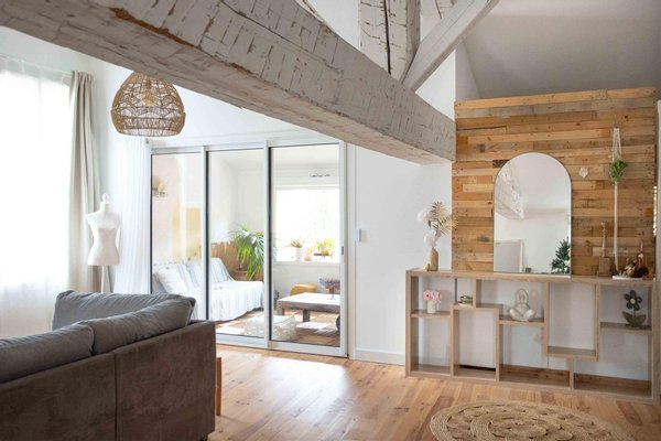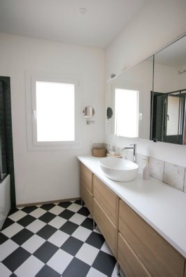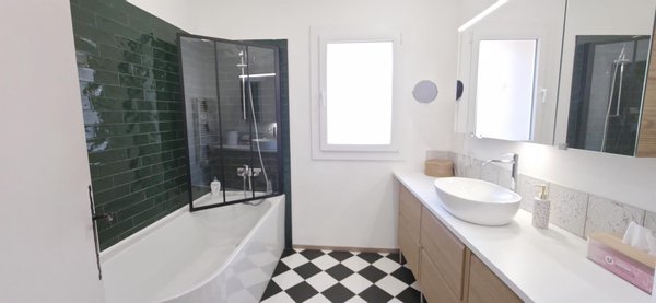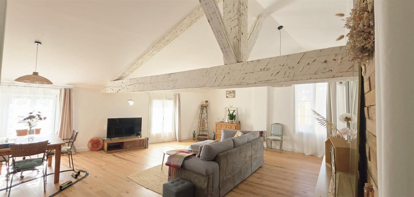 Dieses imposante Dorfaush besitzt große Räume und hohe Decken. Ein Eingang mit Speisekammer ermöglicht den Zugang entweder zur 85 m² großen Garage, zum Keller und zur Waschküche oder zum ersten Stock. Wohnzimmer-Esszimmer mit Pelletkamin, separater Küche, 2 Schlafzimmer, ein Bad mit Badewanne und ein separates WC bilden diesen ersten Bereich. Im Obergeschoss gibt es einen sehr großen Wohnbereich, der zu einem Trockenraum im provenzalischen Stil führt. Der Raum ist klimatisiert, hat Holzböden, sichtbare Balken und eine offene Küche. Es gibt außerdem 2 Schlafzimmer und ein Duschbad mit separatem WC. Profitieren Sie von diesem sehr komfortablen, hellen Ort ohne Arbeiten: Dach erneuert, überall Doppelverglasung, Anschluss an die Abwasserleitung. Ein Haus, das sowohl als Hauptwohnsitz als auch als Ferienhaus leicht zu leben ist. Schnell zu besichtigen...