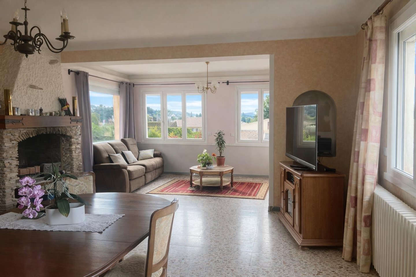 In unmittelbarer Nähe des Dorfkerns, etwa 500 Meter zu Fuß vom historischen Zentrum entfernt, bietet dieses Familienhaus aus den 60er Jahren mit 220 m2 Wohnfläche einen Baumgarten mit 1200 m2 Pool. In ruhiger Wohnumgebung, am Ende einer Sackgasse. Es gliedert sich in eine Hauptwohnung und ein eigenständiges Apartment im Erdgeschoss. Eine Garage von 36 m2. In unmittelbarer Nähe: Geschäfte, Supermärkte, öffentliche Dienste, Freiberufler im Gesundheitswesen, Grundschulen, Collège... Ein praktischer und begehrter Lebensraum, der ruhiges Wohnen mit lebendigem Dorfleben verbindet und nur wenige Kilometer von L’isle-sur-la-Sorgue entfernt ist, mit schneller Anbindung an die wichtigsten Verkehrsachsen. Das Haus bietet großzügige und gut durchdachte Räume mit funktionaler, entwickelbarer Raumnutzung. Die Hauptwohnung verfügt über einen hellen Wohnbereich von ca. 59 m2 mit breiten Öffnungen, die echte Durchlüftung und natürliche Helligkeit bringen. Dieser Raum öffnet sich zur Außenumgebung (große Fenster, Mehrfachausrichtungen, elektrische Rollläden) mit uneingeschränktem Blick auf Dächer und Hügel. In dieser Ebene befinden sich auch zwei Schlafzimmer, ein großes Ankleidezimmer/Büro, das je nach Bedarf als zusätzliches Schlafzimmer genutzt werden kann. Im Erdgeschoss des Hauses befindet sich eine eigenständige Wohnung mit eigenem Eingang, bestehend aus einer Dining-Küche, einem Wohnzimmer-Bibliothek, 1 Schlafzimmer, 1 Bad, separates WC. Dieser Bereich ergänzt das Ganze perfekt und bietet vielseitige Nutzungsmöglichkeiten: zusätzliche Wohnung, Familienempfang, berufliche Tätigkeit oder Mietprojekt. In der Nähe des Pools befindet sich ein convivialer Raum von ca. 32 m2, angrenzend an eine Veranda mit Sommerküche, der je nach Projekt genutzt werden kann: Bar mit Speisesaal, Spielzimmer, Billardraum oder jede andere Freizeitnutzung. Im Norden liegt ein noch ungenutztes Grundstück, das ein Gemüsebeet aufnehmen kann. Die Parzelle profitiert vom Wasserkanal. Es handelt sich um ein gesundes Haus mit solider Bausubstanz, das mit Ausstattungen und zeitgemäßer Gestaltung ergänzt werden kann, je nach Projekten und Erwartungen der Familien. Dieses Objekt richtet sich an Käufer, die ein traditionelles Haus suchen, das sich in die Charakteristik des Ortes einfügt, um ein Projekt nach ihrem Stil zu realisieren und sich von standardisierten Häusern abheben möchten. Ein vollständiges Dossier kann nach einem ersten Austausch übermittelt werden. Verkaufsmodalitäten Angebot mit fortlaufendem Preis (OBLIGATORISCH) Angebot mit fortlaufendem Preis: Die Angebote werden online auf der Immofit-Plattform bis zum 05.03.26 um 23:00 Uhr (Europe/Paris) entgegengenommen. Der auf der aktuellen Anzeige angegebene Preis entspricht dem Erstangebot inklusive Verhandlungsgebühr. Die Bietenden können ihre Angebote stufenweise in mind. 4.000 € Schritten bis zum Ablauf der interaktiven Ausschreibung einreichen. Die Teilnahme am Bieterprozess setzt eine vorherige Genehmigung voraus. Alle Angebote werden dem Verkäufer übermittelt, der frei entscheiden kann, welches Angebot er annimmt. Ein Online-Angebot während der interaktiven Ausschreibung gilt nicht als verbindliches und präzises Angebot i.S.d. Artikel 1114 Bürgerliches Gesetzbuch, sondern als Kaufabsicht.