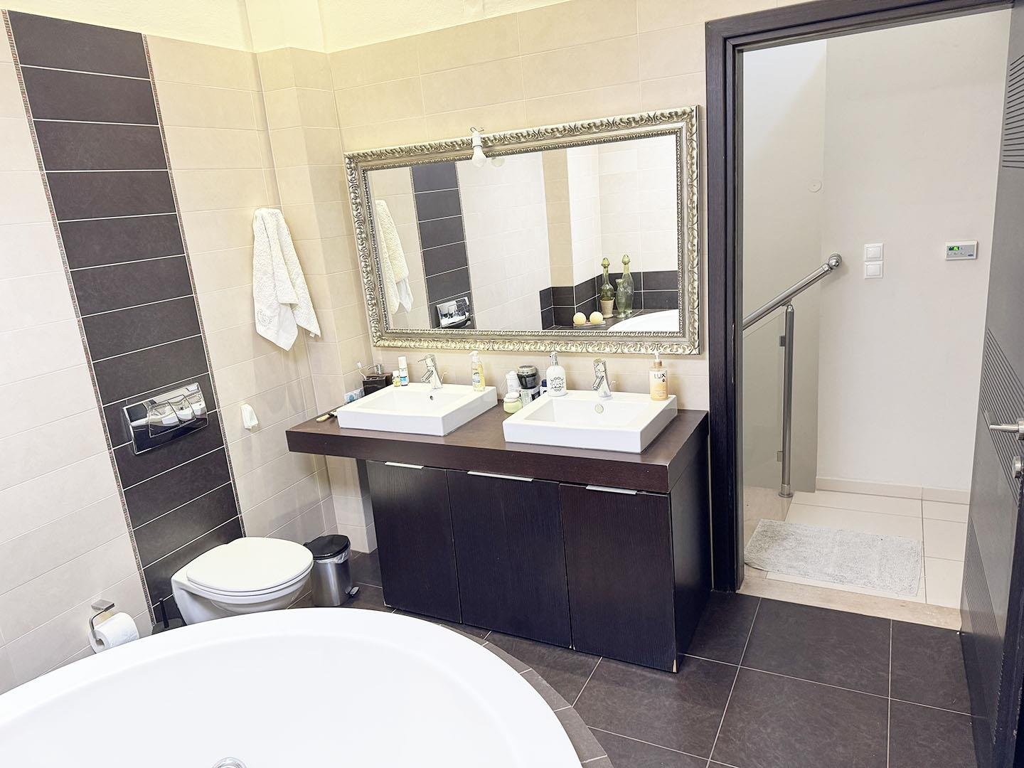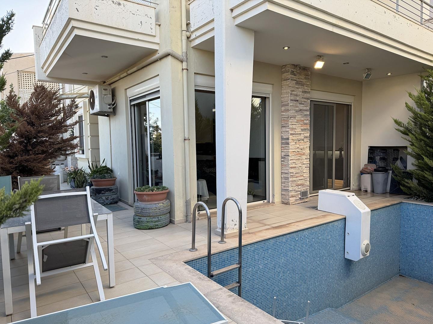 Luxuriöse freistehende Immobilie mit 3 Schlafzimmern, separater Ein-Zimmer-Wohnung und einem Pool von 23,4 m² befindet sich in einer der besten Lagen der Stadt Heraklion, 10 Autominuten vom Strand und dem Stadtzentrum entfernt und nahe einem Krankenhaus, in einer Gegend mit allen Einrichtungen in der Umgebung (Supermärkte, Bäckereien, Apotheken, Restaurants usw.). Im Erdgeschoss gibt es einen offenen Bereich mit Wohnzimmer, der einen energiesparenden Kamin, eine Garderobe für Mäntel, einen Essbereich, ein Gäste-WC, eine voll ausgestattete Küche mit einem Korian-Arbeitsplatten, einen Abstellraum hinter einer verglasten Tür beherbergt. Das gesamte Stockwerk verfügt über versteckte Beleuchtung und Edelstahl-Details in vielen Bereichen. Im ersten Stock gibt es drei Schlafzimmer, alle mit umlaufenden Balkonen und einem WC mit einer runden Jacuzzi-Badewanne. In einem der Schlafzimmer besteht ein versteckter Ausgang zum Dach, der in einen schönen Dachgarten mit Meerblick umgewandelt werden kann. Im Haus führen Treppen sowohl zum ersten Stock als auch zum Keller. Draußen gibt es einen Pool und einen Grillbereich. Der Haupteingang des Grundstücks liegt an der Straße und es gibt einen separaten Eingang zu einer Garage. Daneben befindet sich der Zugang zu einer Ein-Zimmer-Wohnung von 33,5 m² und der Technikraum. Zur Beheizung und Kühlung gibt es eine Fußbodenheizung mit Wärmepumpe, eine Solarthermie für warmes Wasser und alle Fenster haben UV-Schutz.