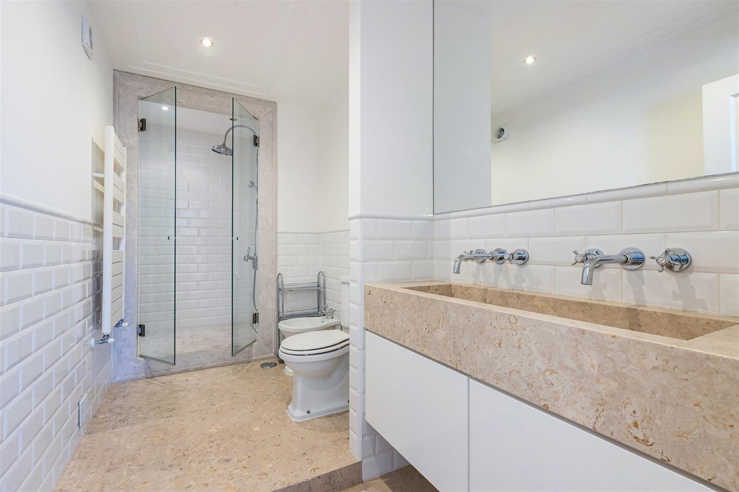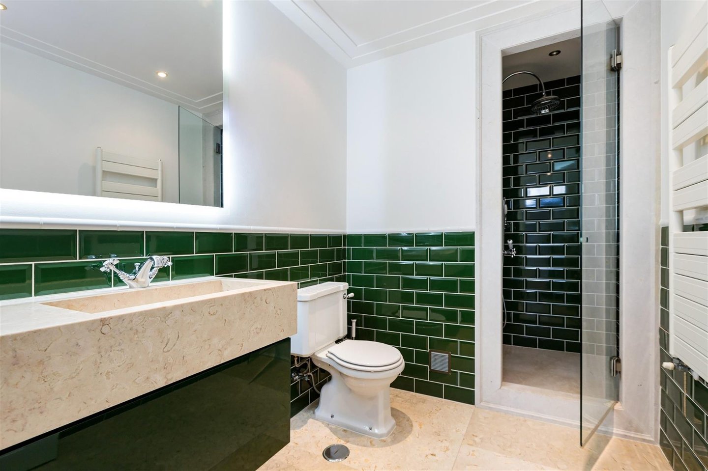 Im unteren Stockwerk bietet der Wohnbereich ein Dachfenster im Wohnzimmer, das unglaubliches natürliches Licht ermöglicht. Neben dem Wohnzimmer gibt es ein großes Büro, das in einen Essbereich umgewandelt werden kann. Die Designer-Küche ist vollständig mit Smeg-Geräten ausgestattet.