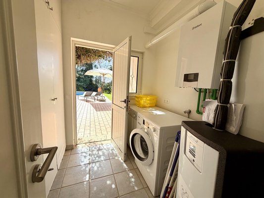 Fußbodenheizung (Gas – kann auf Wärmepumpe umgestellt werden), Klimaanlage, Doppelverglasung, Alarmanlage, Trinkwasseranschluss, Bohrloch, Solarzellen für Warmwasser, Wasserentkalker, Sicherheitsschalter, die in die Wand gleiten.