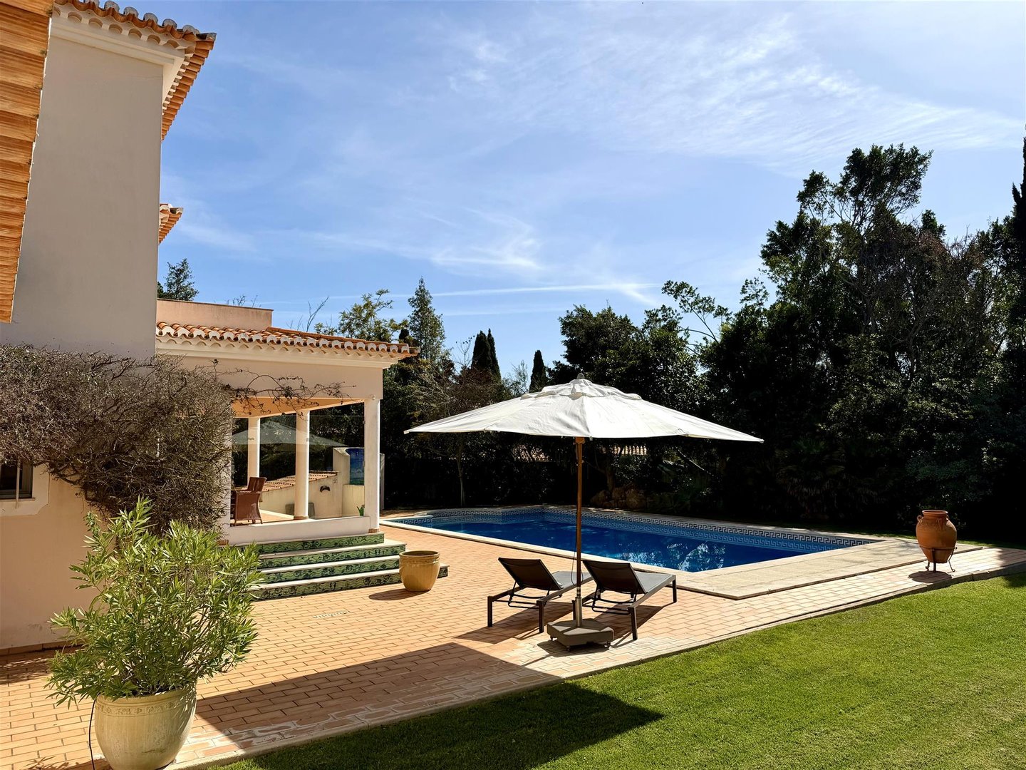 Elegante, gepflegte, großzügige Villa in einer wunderschönen, exklusiven Wohngegend. Nur eine kurze Gehdistanz zu einem Tennis-/Padel-Gymnasium, Restaurants und in bequemer Reichweite zum Pestana-Golfplatz, berühmten Stränden und dem malerischen Dorf