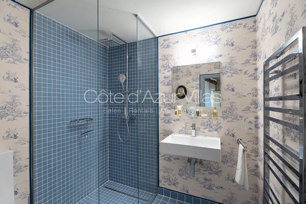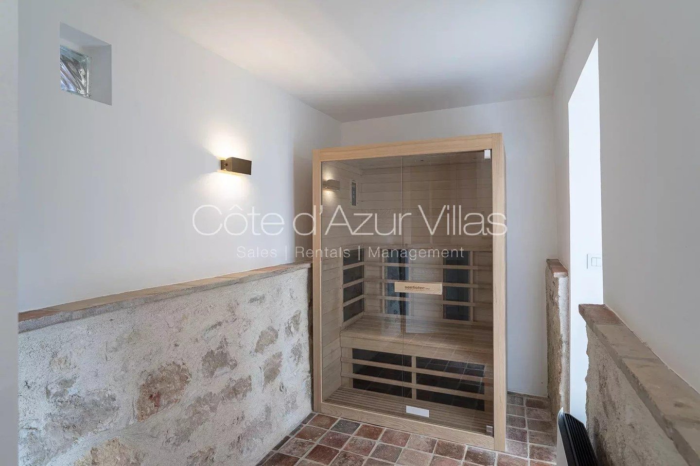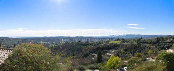Lichtdurchflutet zu jeder Stunde dank der Südausrichtung, überblickt die Liegenschaft die Dorfhäuser und präsentiert einen spektakulären Panorama-Blick, der die umliegenden Hügel und das Meer von Nizza bis zur Napoule-Bucht umfasst. Eine lebendige Szenerie, die sich im Laufe der Stunden und der Jahreszeiten verändert.