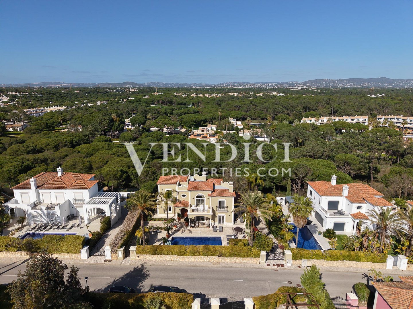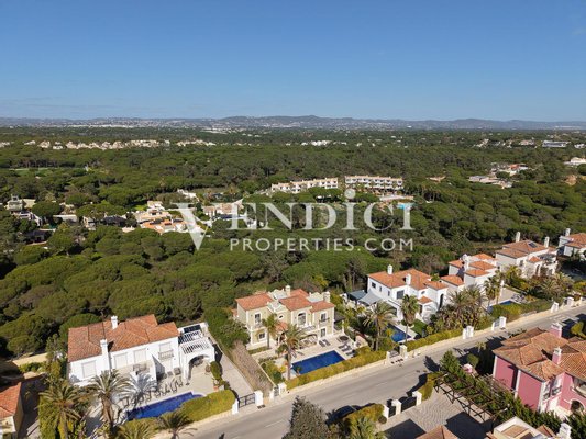 Idealerweise zwischen den prestigeträchtigen Resorts Quinta do Lago und Vale do Lobo gelegen, genießt diese anspruchsvolle Immobilie eine Spitzenposition und wird von dem geschützten Kiefernwald abgerundet. Das Heim bietet Privatsphäre und Ruhe, bleibt aber nah an fantastischen Einrichtungen wie Golfplätzen, Tenniszentren, Restaurants und den lokalen Annehmlichkeiten, die den renommierten Golden Triangle auszeichnen.