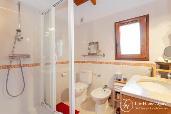 Diese elegante Villa mit drei Schlafzimmern und drei Badezimmern befindet sich in Alma Verde, einer ruhigen Wohnanlage auf dem Land von Barão de São Miguel, nur fünf Autominuten vom berühmten Fischerort Burgau entfernt. Auf einem großzügigen Grundstück von 595 m² mit einer Gesamtbaufläche von 207 m² bietet die Immobilie das perfekte Gleichgewicht zwischen modernem Komfort und dem Charme des Lebens an der Algarve. Renoviert im Jahr 2023 profitiert die Villa von zeitgenössischen Updates, behält aber ihren einladenden Charakter. Fast alle Fenster sind mit Mückenschutz ausgestattet, und die Immobilie verfügt zudem über ein Coolhouse-Kühlungssystem, das für eine angenehme, energieeffiziente Innenraumtemperatur im Sommer sorgt. Die geräumigen Innenräume schaffen eine freundliche Umgebung für den Alltag, während der Grundriss sich perfekt für die Gästebewirtung eignet. Ein beheizter privater Pool bildet das Herz des Außenbereichs, umgeben von Terrassen, die ideal sind, um die Sonne zu genießen und Mahlzeiten im Freien unter der Algarve-Sonne zu genießen. Die Immobilie umfasst außerdem eine sichere Garage mit integrierter Waschküche und Dachboden, die zusätzlichen Komfort und Funktionalität bietet. Alma Verde ist bekannt für seine ruhige und natürliche Umgebung und macht dieses Haus zu einer idealen Zuflucht für alle, die Ruhe auf dem Land suchen, ohne sich von der Küste zu entfernen. Ergänzend zu seinem Lifestyle-Reiz ist die Villa mit einem Energiespar- und Wassersystem (Smart Home) ausgestattet, das eine nachhaltige Dimension und Kostenoptimierung bietet. Ob als Hauptwohnsitz oder als saisonale Vermietungsinvestition – diese Immobilie verbindet Privatsphäre, Funktionalität und eine privilegierte Lage und bietet das Beste des Algarve-Lifestyles nur wenige Minuten von den schönsten Stränden der Region.