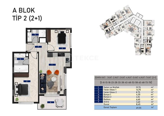Stilvoll gestaltete Wohnungen in Hotelkomfort in Alanya Avsallar & 13 Die stilvoll gestalteten Immobilien befinden sich in Alanya Avsallar. Alanya ist seit Jahren einer der beliebtesten Mittelmeerregionen für Urlaub und Leben mit seinem tiefblauen Meer, der üppigen grünen Natur und den Stränden. Die brandneuen Wohnungen, die durch ihr unterschiedliches und modernes Design auffallen, befinden sich in Avsallar, einem erschlossenen Gebiet von Alanya, in dem sich die beliebtesten Wohn- und Ferienprojekte befinden. & 13 Die Wohnungen zum Verkauf in Alanya Antalya befinden sich 1,50 km vom Meer, 2,28 km vom Naturpark İncekum, 3,16 km vom Sea Dolphin Park, 18 ,55 km vom berühmten Kleopatrastrand, 21 km von der Burg von Alanya, 23,9 km vom Einkaufszentrum Alanyum und 58,95 km vom Flughafen Gazipaşa-Alanya entfernt. & 13 Das Projekt wurde auf einem 9.000 m² großen Grundstück errichtet und besteht aus 3 Blöcken und 162 Wohnungen. Der Komplex bietet ein komfortables Leben Außenpool, Poolbar, privater Sandpool, Aquapark, Basketballplatz, Minifußballfeld, Gärten zur gemeinsamen Nutzung, Rezeption, Lobby, Umkleideraum, türkisches Bad, Sauna, Dampfbad, Salzraum, Massageraum, Spielzimmer für Erwachsene und Kinder, Besprechungsraum, Fitnessraum, Café/Restaurant, Grill, Parkplatz im Freien, Generator und Pförtner. & 13 Die Wohnungen sind erstklassig verarbeitet: Stahltür, Küchenmöbel, Bodenfliesen, abwischbare Kunststoff-Wandfarbe, PVC-Balkontüren und -fenster, Fernseh- und Telefonanschluss im Wohnzimmer, Steckdosen in allen Zimmern und auf allen Balkonen, Balkonschiebetüren.& 13 AYT-04421