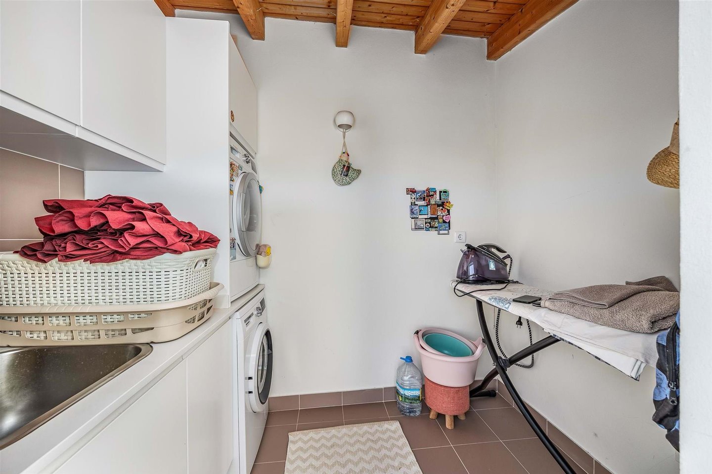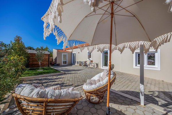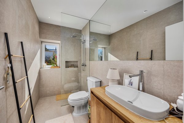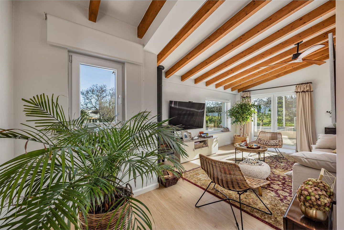 Draußen beeindruckt die Villa weiterhin. Ein separates Waschhaus in einem Nebengebäude, ein Holzlagerhaus und eine Garage schaffen Praktikabilität, während die überdachte Terrasse den perfekten Rahmen für Mahlzeiten im Freien, Unterhaltungen oder Entspannung im Schatten bietet. Auf einem Grundstück von 687 m² bietet der Garten viel Platz zum Entspannen, Unterhalten oder weiter nach Ihrem Geschmack anzupassen.