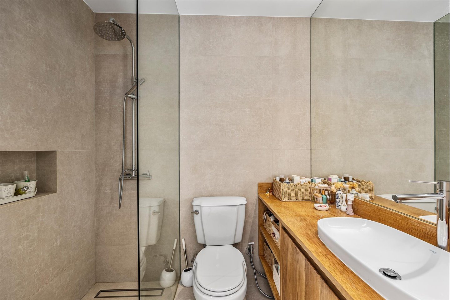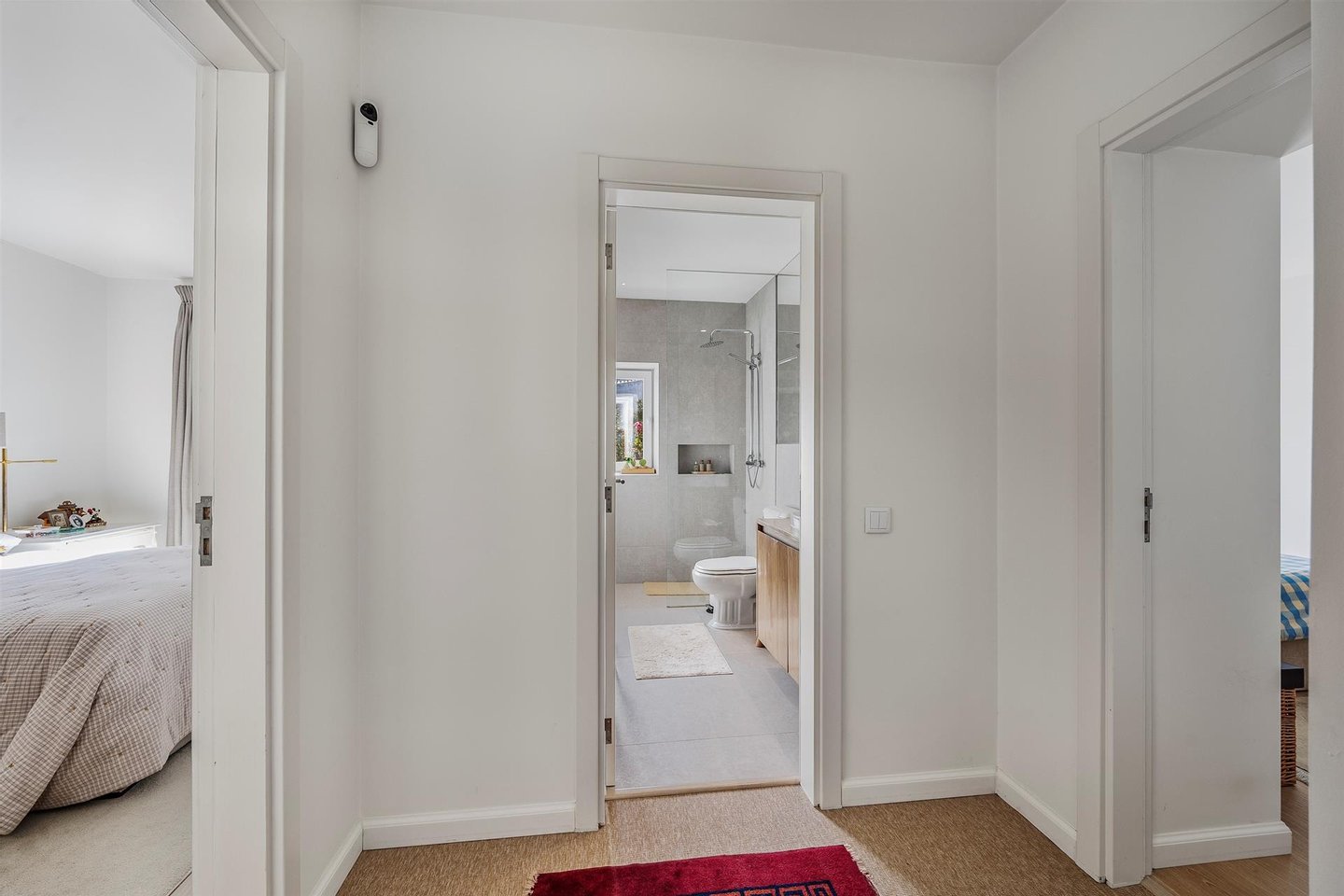 Die Immobilie verfügt über drei geräumige Schlafzimmer, von denen zwei über stilvolle en-suite Badezimmer mit modernen Walk-in-Duschen verfügen. Die hochwertig verarbeiteten Oberflächen durchziehen das gesamte Haus, darunter doppelt verglaste PVC-Fenster, zeitgenössische Laminatböden und durchdacht ausgewählte Materialien, die Komfort und Haltbarkeit erhöhen.