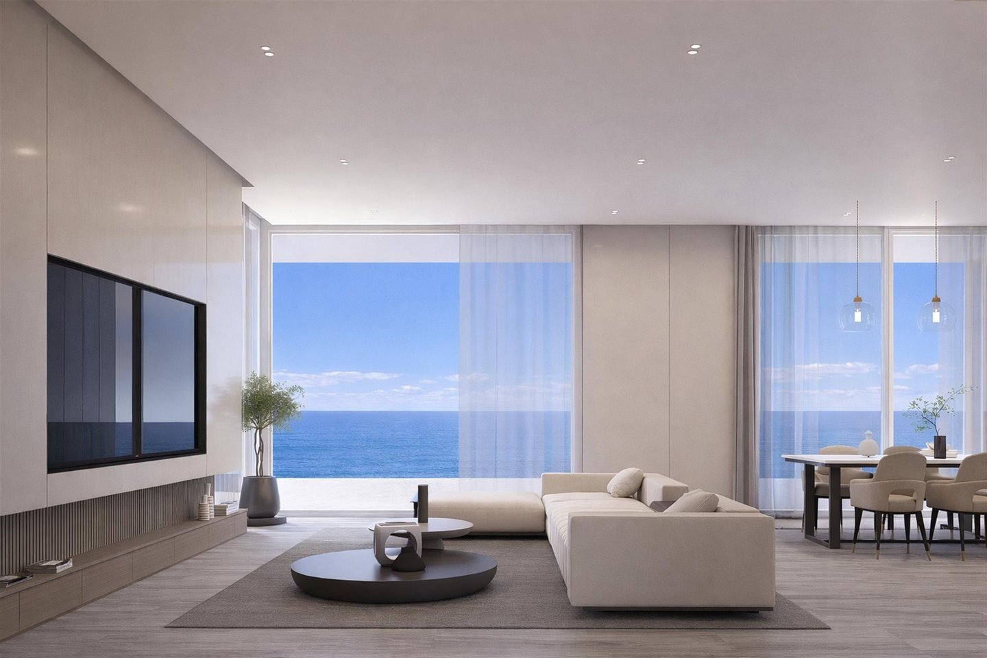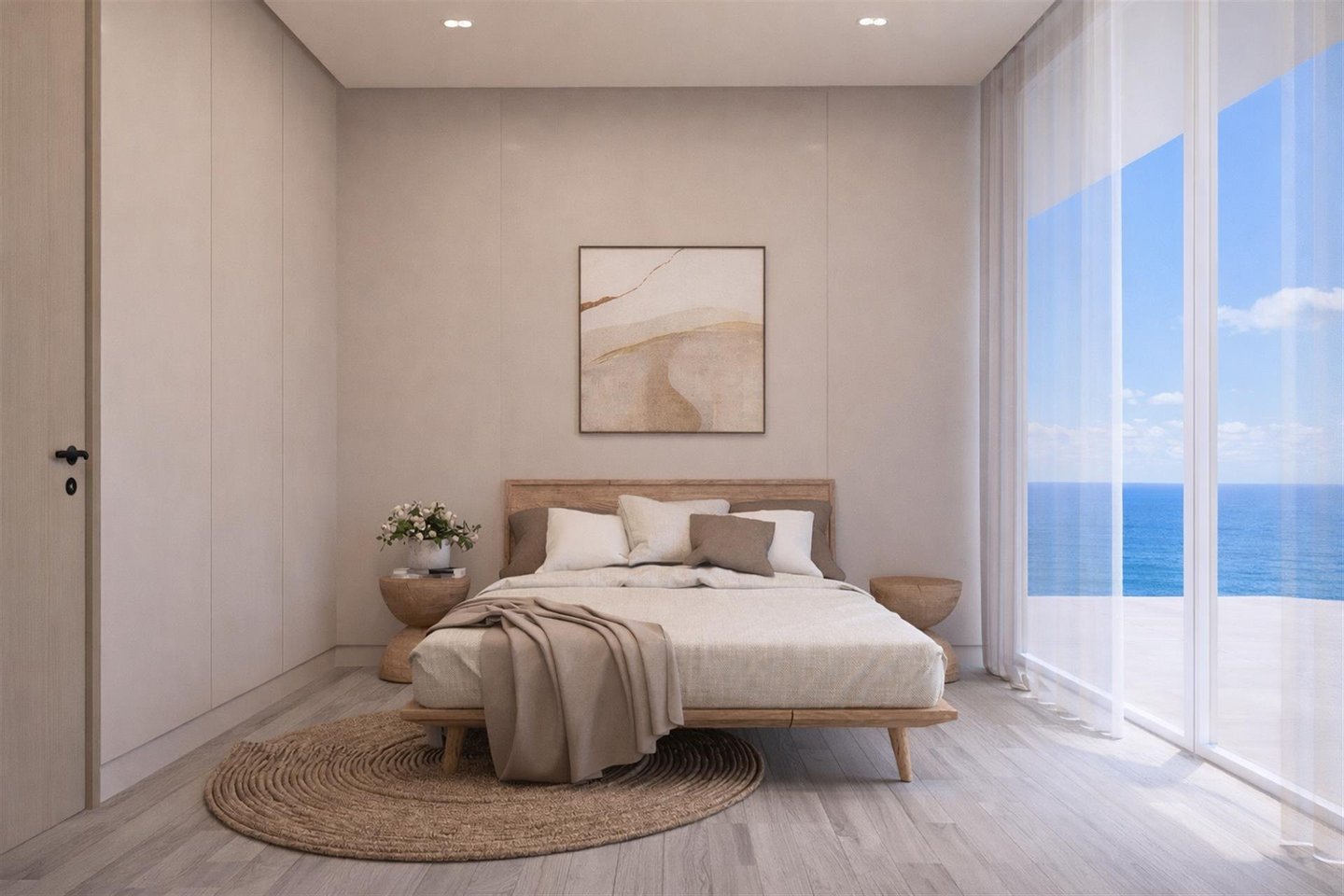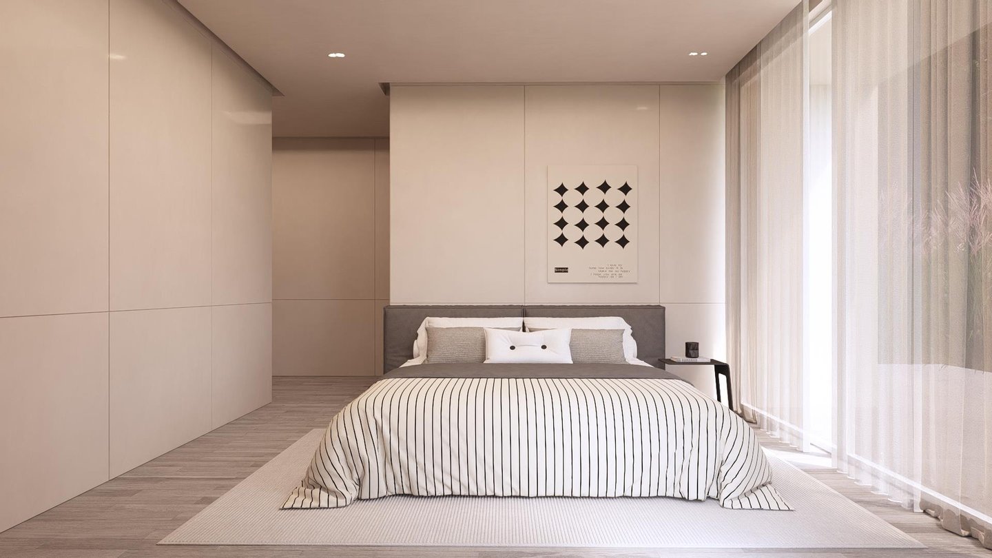 Die Badezimmer sind mit Sanitärkeramik und Armaturen bekannter Marken (Roca/Grohe) ausgestattet. Für zusätzlichen Komfort gibt es Klimaanlage, Wärmepumpe für Warmwasser sowie Photovoltaik-Panels zur Eigennutzung. Der Pool ist keramisch eingefasst und das Objekt präsentiert eine Innen- und Außengestaltung in neutralen, modernen Tönen.