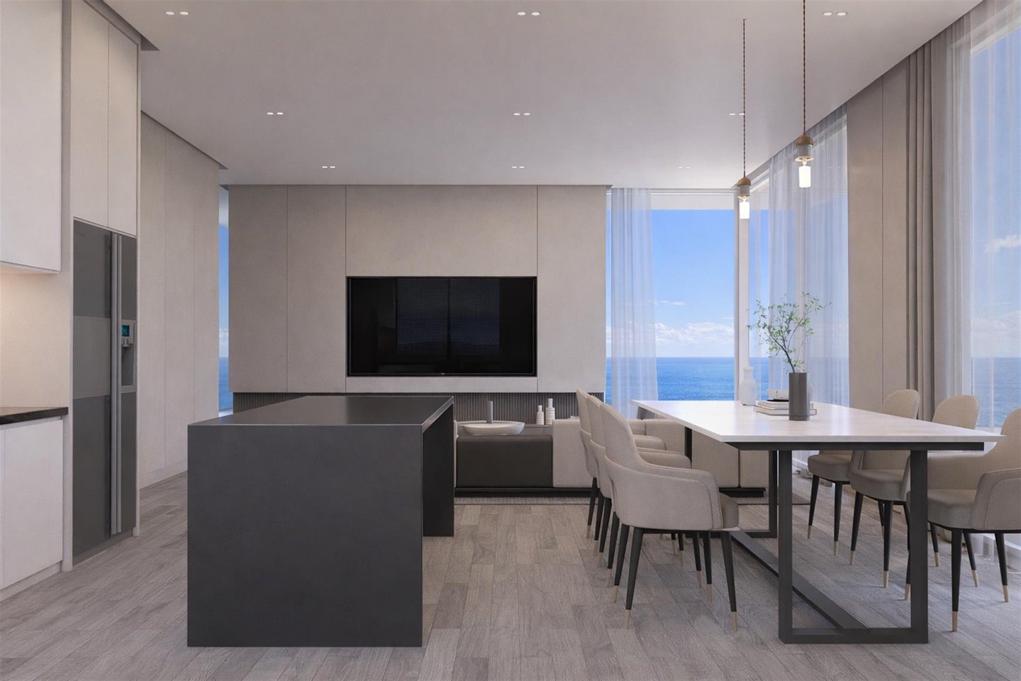 Das Haus bietet hochwertige Oberflächen, Aluminiumrahmen mit Doppelverglasung und thermischer Trennung, Innen- Vinylböden und Außenflächen in Keramik. Die moderne Küche ist mit Teka-Elektrogeräten ausgestattet, hat lackierte Möbel mit Soft-Close-System und Granit-Arbeitsplatte. Die eingebauten Kleiderschränke bieten guten Stauraum.