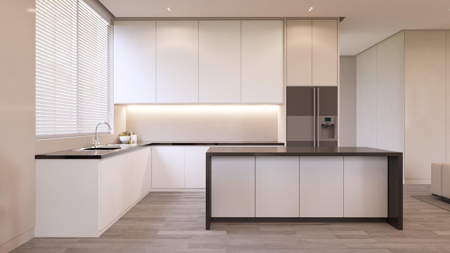 - Moderne Küche, offen realisiert, ausgestattet