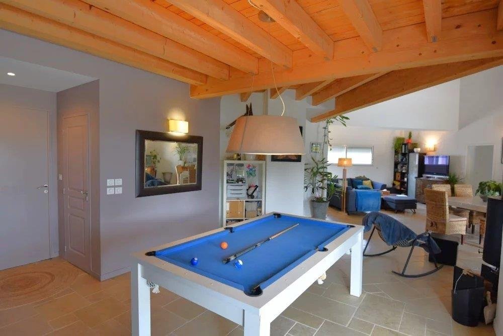 Ein ansprechender Entspannungsbereich mit Billard verlängert den Wohnraum und führt nach draußen.