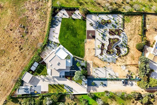 Der Außenbereich umfasst zudem eine Terrasse mit einer 8x4 m großen bioklimatischen Pergola, ideal zum Entspannen, sowie einen separaten Anbau, der in ein charmantes Studio umgewandelt wurde. Dieser besteht aus einem Lounge-Bereich, einem Badezimmer und einem Schlafbereich. Zusätzlich gibt es einen 10x4 m großen beheizten Pool (im Bau) umgeben von einem großen von einem Landschaftsarchitekten gestalteten Garten, der die perfekte Balance zwischen Ästhetik und Wartungsfreundlichkeit bietet, sowie eine 1.000 m² große Rasenfläche, die von einem automatischen Roboter gepflegt wird.
