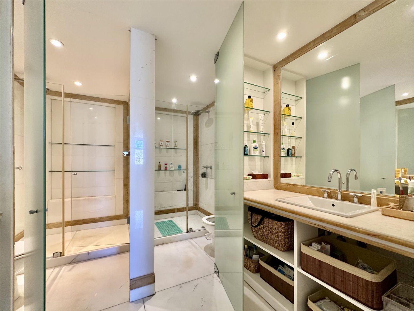 Im Erdgeschoss bietet die Wohnung eine große Küche, ein Esszimmer und ein äußerst großzügiges Wohnzimmer/TV-Raum, perfekt zum stilvollen Empfangen. Der Boden verfügt außerdem über ein vollständiges Gäste-WC und eine geräumige Suite mit großen Kleiderschränken und hervorragender natürlicher Beleuchtung, die Funktionalität im Alltag und Komfort in jedem Detail gewährleistet.