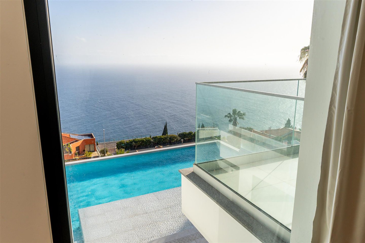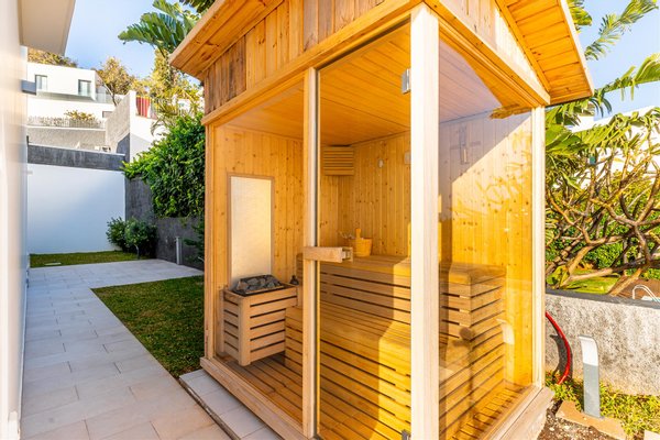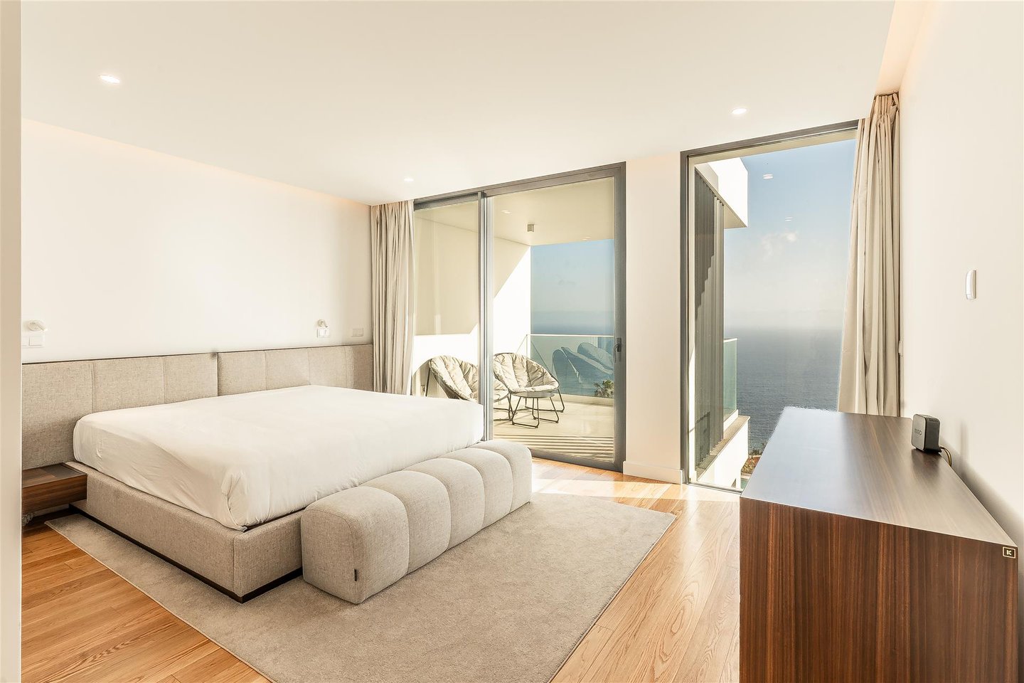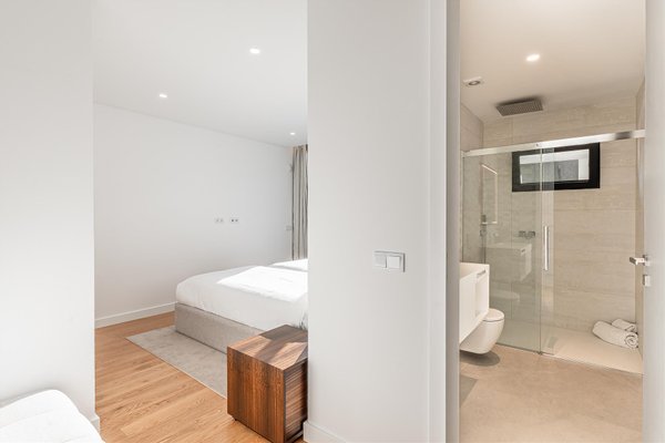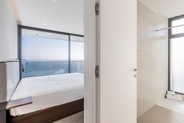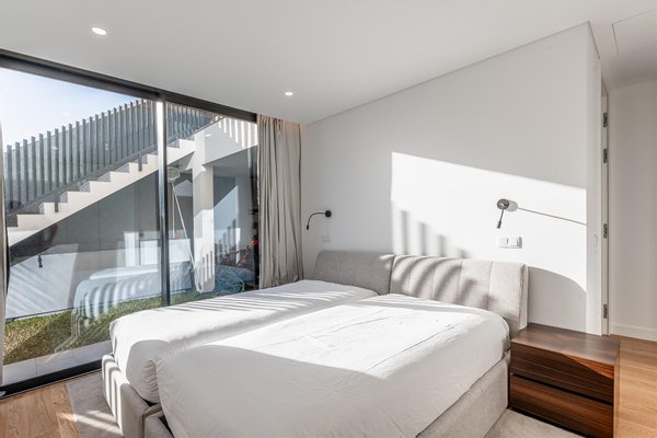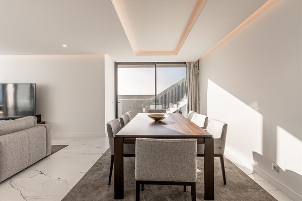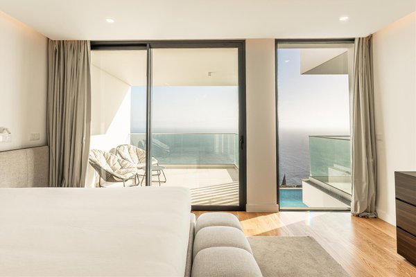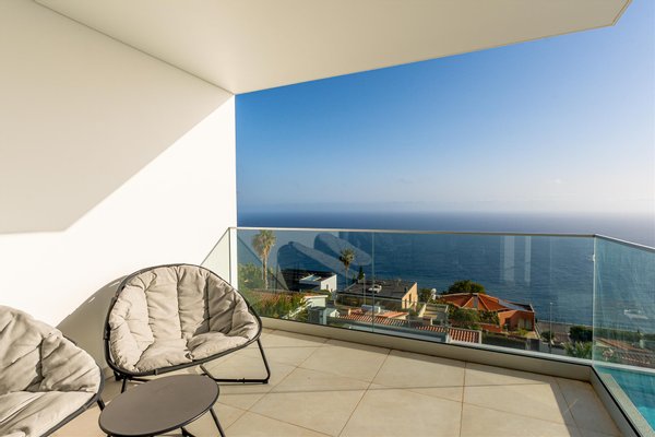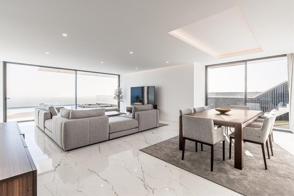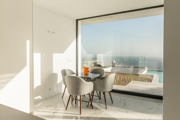 Die Hauptwohnung hat eine direkte und fließende Verbindung zum Außenbereich. Die Terrasse steht im Mittelpunkt; der Infinity-Ppool scheint sich mit dem Atlantik zu vereinen. Für die Abende sorgt der Feuerplatz für einen gemütlichen und eleganten Raum, perfekt zum Entspannen.