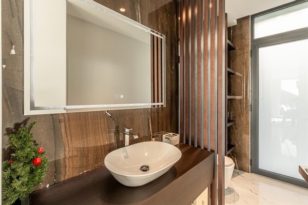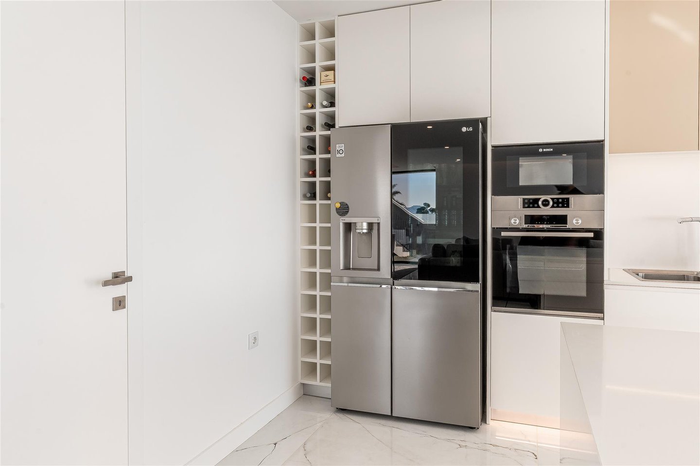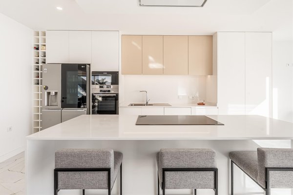 Die Küche ist groß, vollständig ausgestattet und verbindet ansprechendes Design mit Alltagspraktikabilität. Für mehr Komfort und Bewegungsfreiheit sorgt das Hauptgeschoss mit einem Gästebad und einem privaten Aufzug, der alle Ebenen bedient.