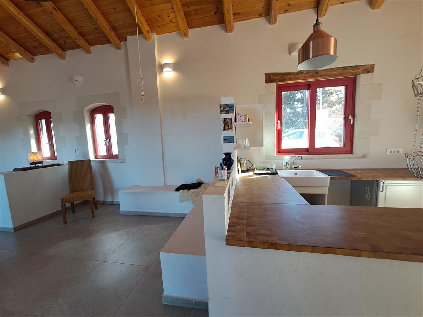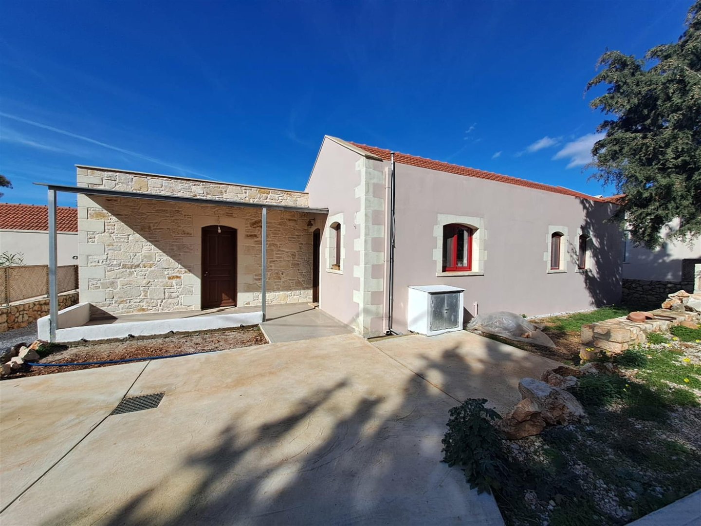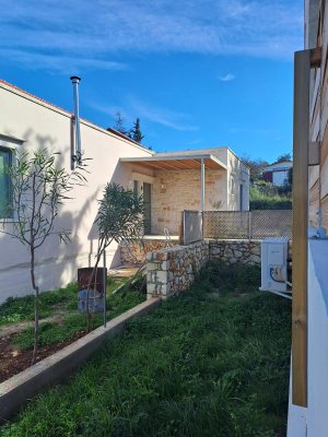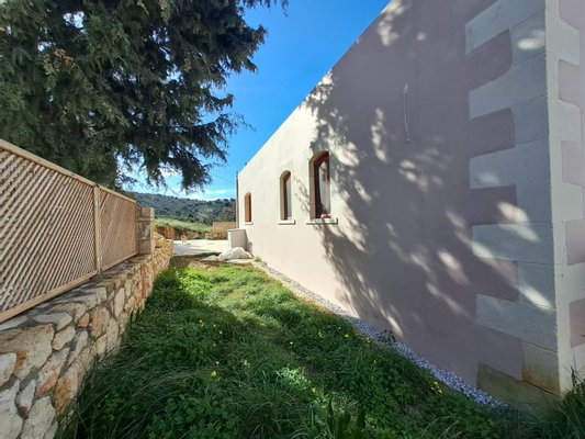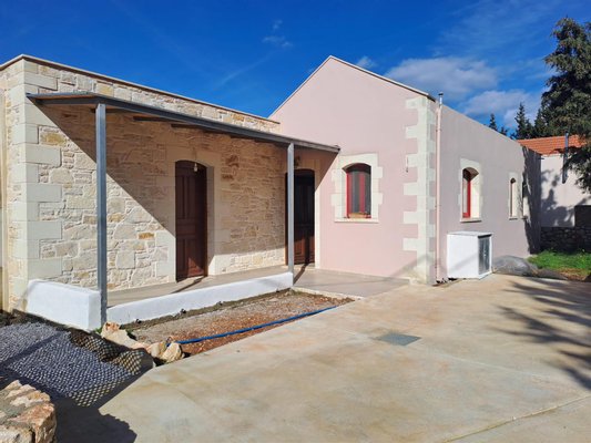 Dieses neu gebaute, freistehende 2-Schlafzimmer-Ein-Zimmer-Haus befindet sich in einer ruhigen privaten Sackgasse, nur wenige Gehminuten vom Vamos-Platz entfernt, und bietet eine perfekte Mischung aus modernem Komfort, traditionellem Dorfleben und