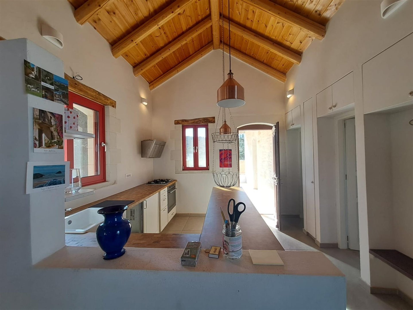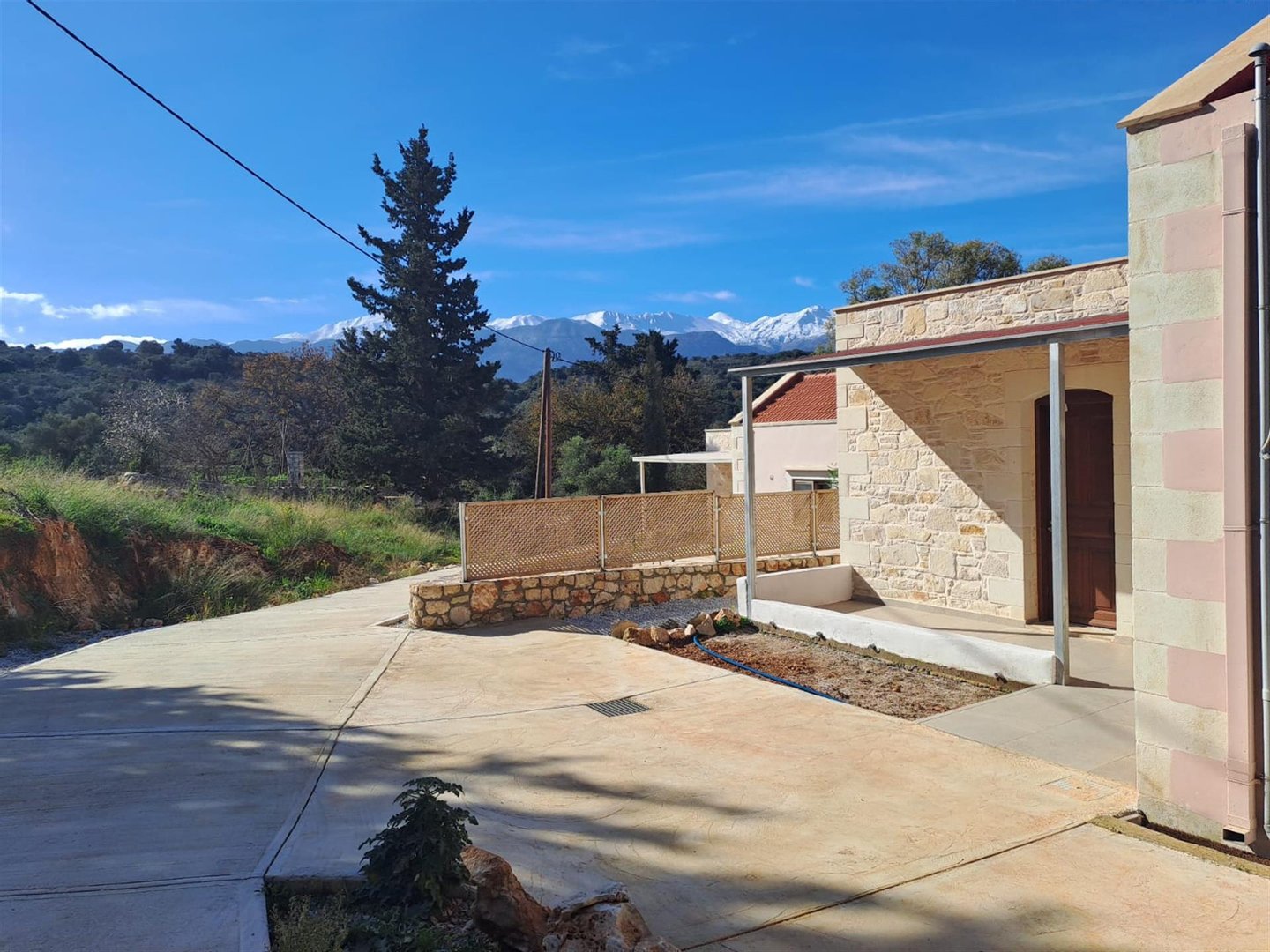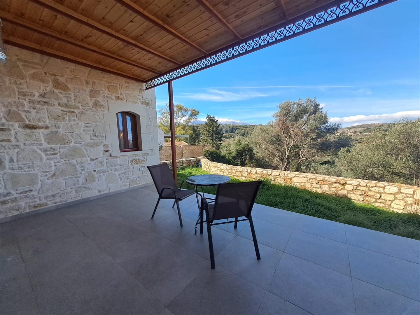 Dieses neu gebaute, freistehende 2-Schlafzimmer-Ein-Zimmer-Haus befindet sich in einer ruhigen privaten Sackgasse, nur wenige Gehminuten vom Vamos-Platz entfernt, und bietet eine perfekte Mischung aus modernem Komfort, traditionellem Dorfleben und Bergblicken.