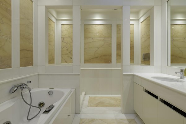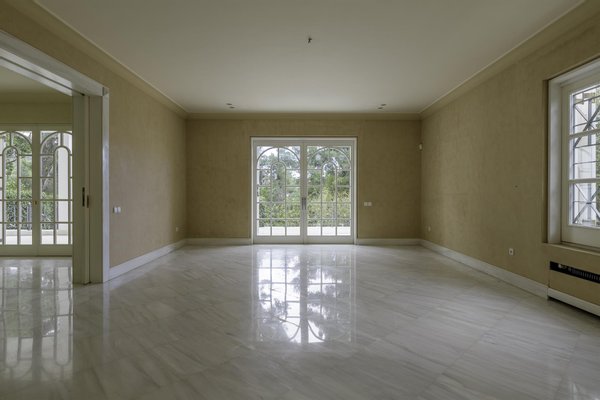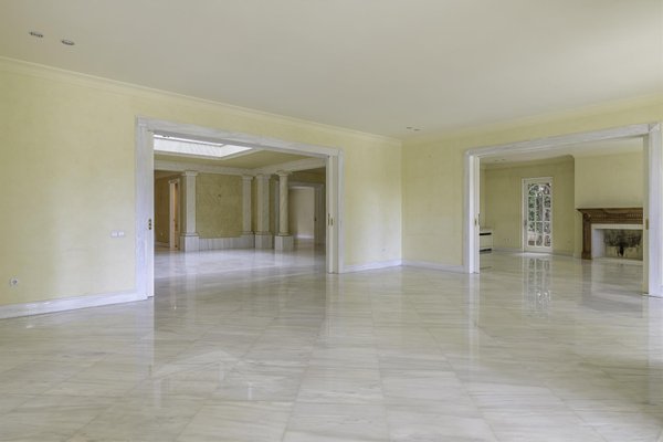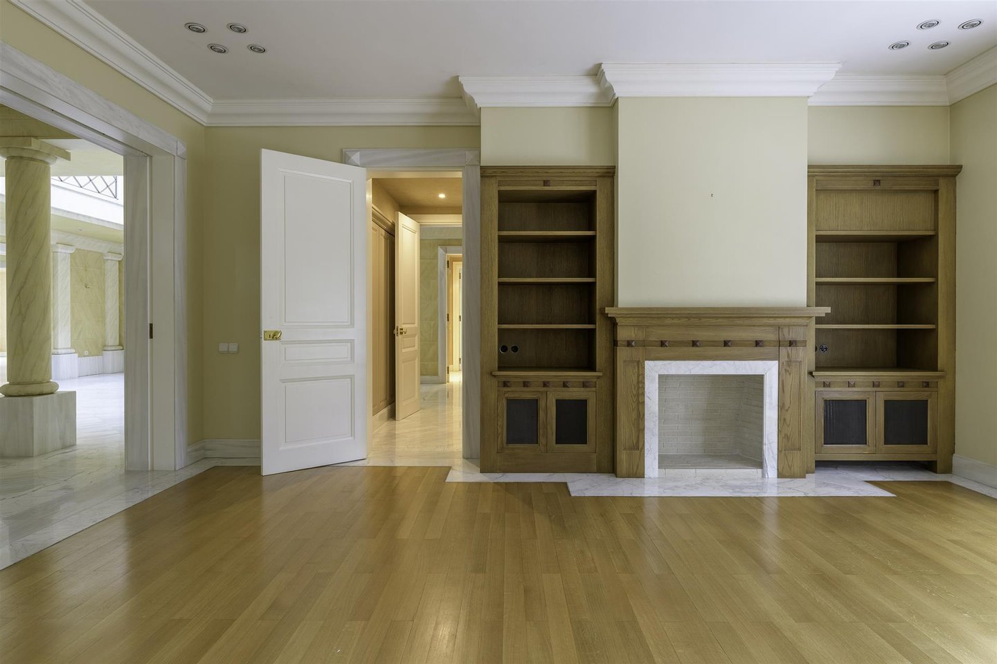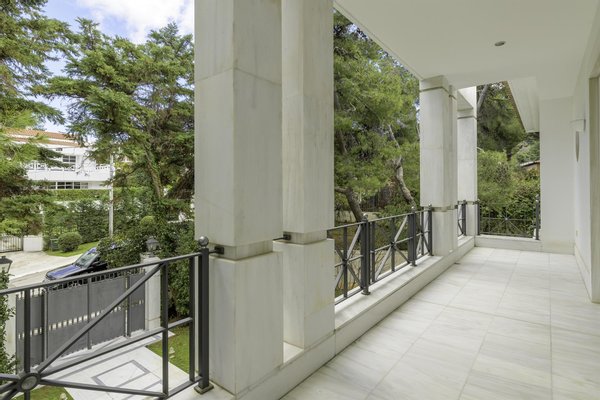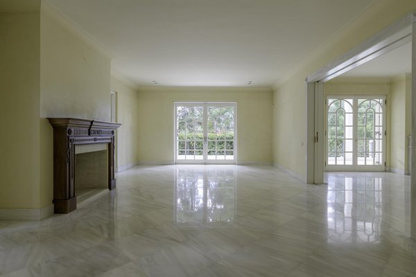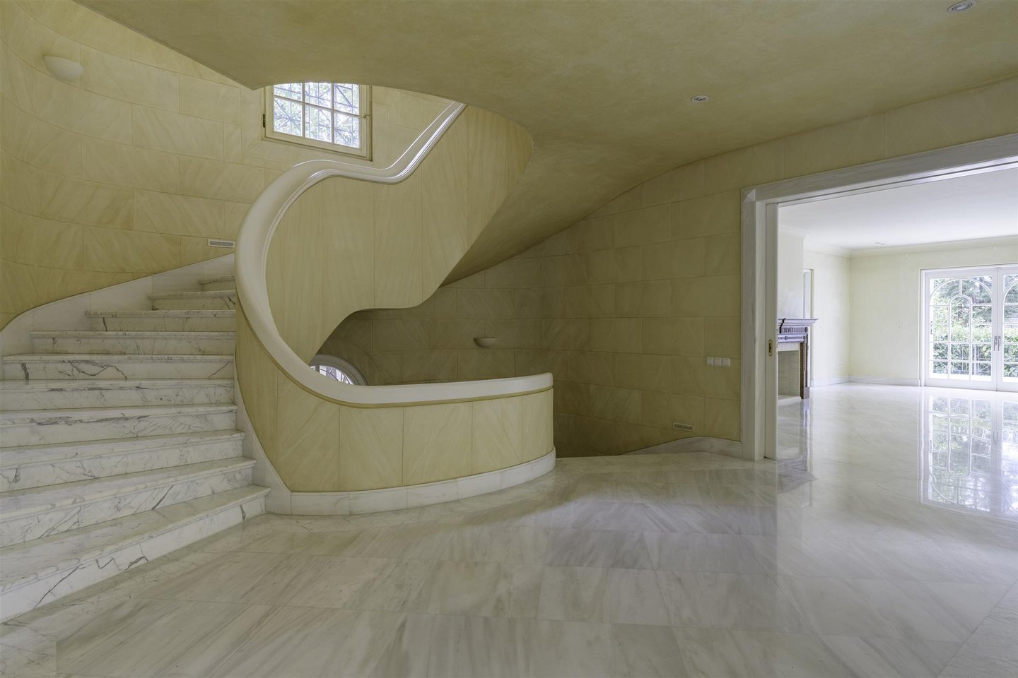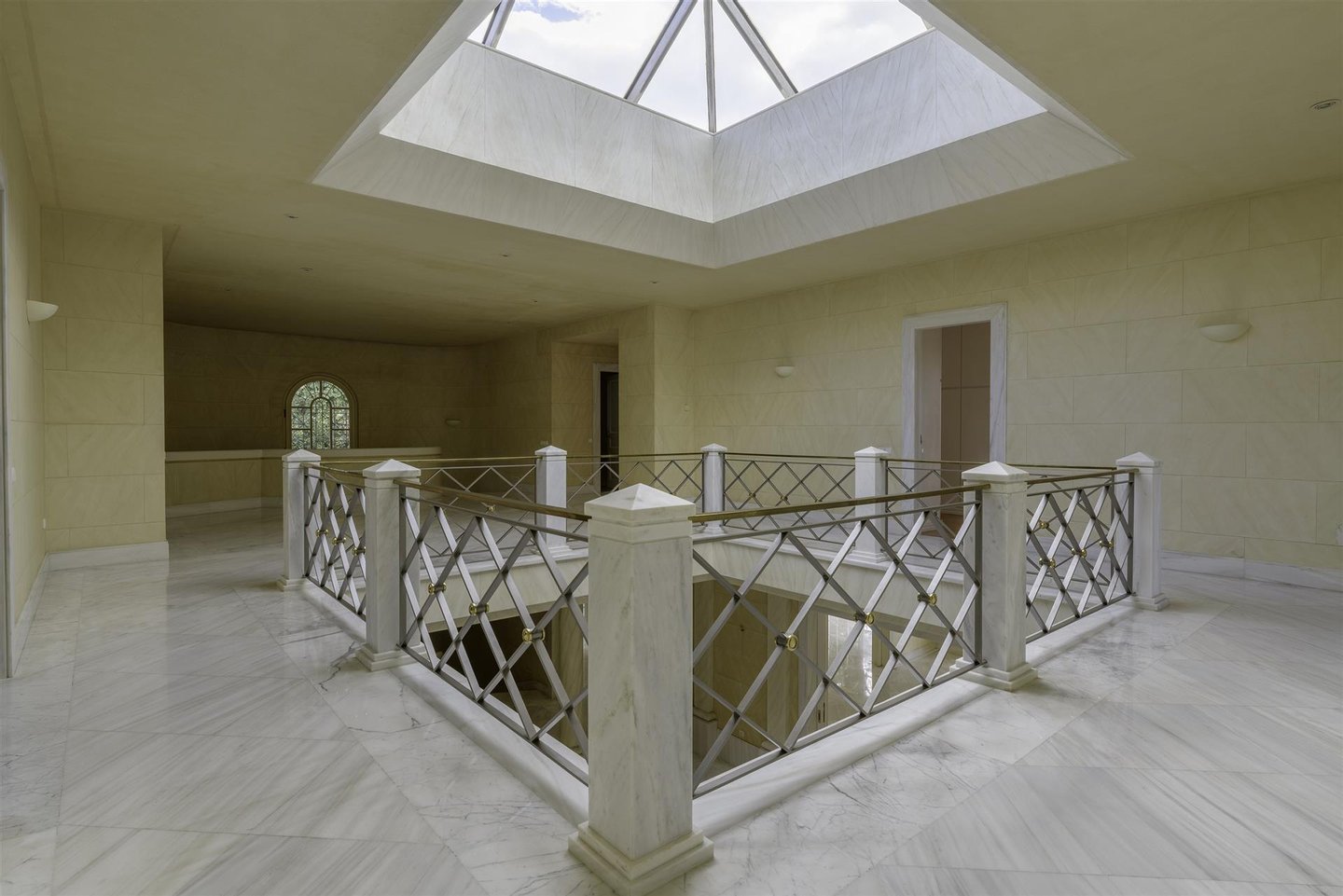 Die beeindruckende Innentreppe führt in den ersten Stock, wo ein imposanter und heller Lichthof ausgeprägt ist. Im Obergeschoss gibt es eine Sitzecke, ein geräumiges Master-Schlafzimmer mit Kamin und einem großen Marmorbadezimmer sowie drei weitere en-suite Schlafzimmer mit begehbaren Kleiderschränken, von denen zwei über Kamin verfügen.