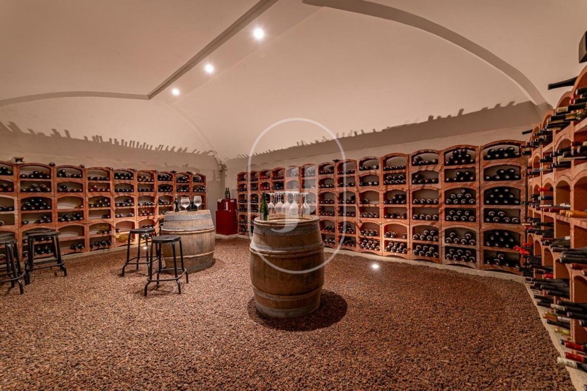 Ebenerdig befindet sich eine unabhängige Wohnung mit Blick auf den Poolbereich. Sie verfügt über eine gemütliche Lounge mit Holzofen, eine voll ausgestattete Küche und drei Schlafzimmer mit eigenem Bad. Ein seltenes Merkmal: ein 30 qm-Weinkeller, der in den Fels gehauen ist.