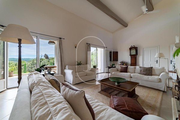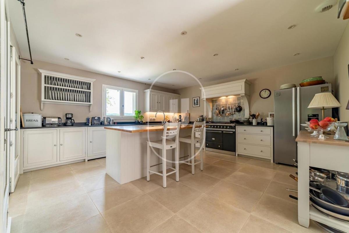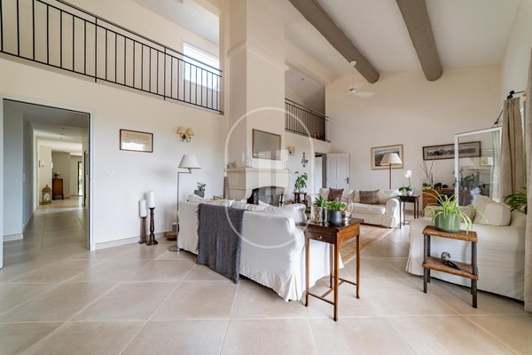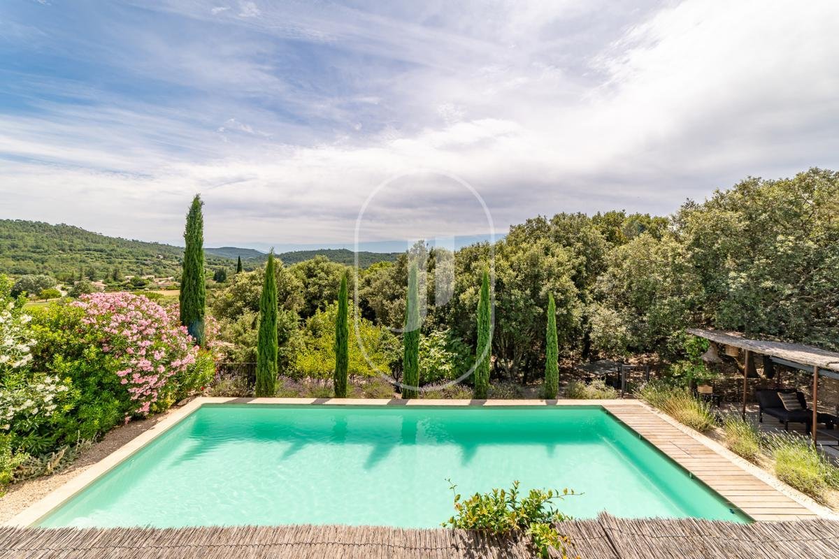 Aufgeteilt in zwei unabhängige Wohnräume, verbunden durch eine interne Treppe, eignet sich die Immobilie sowohl für große Familien als auch für jene, die eine Zweitwohnsitz-Nutzung mit Vermietungspotenzial wünschen. Das Haupthaus, alles auf einer Ebene, erstreckt sich über ca. 270 qm und ist rund um einen zentralen Patio gebaut, der einen fließenden Übergang und Kohärenz im gesamten Haus gewährleistet. Die 36 qm große offene Küche liegt im Zentrum des Hauses und öffnet sich zu einem lichtdurchfluteten Esszimmer, einer TV-Lounge und einem spektakulären, gewölbten Wohnzimmer mit Kamin, das atemberaubende Ausblicke über das Tal und in Richtung Mont Ventoux bietet.