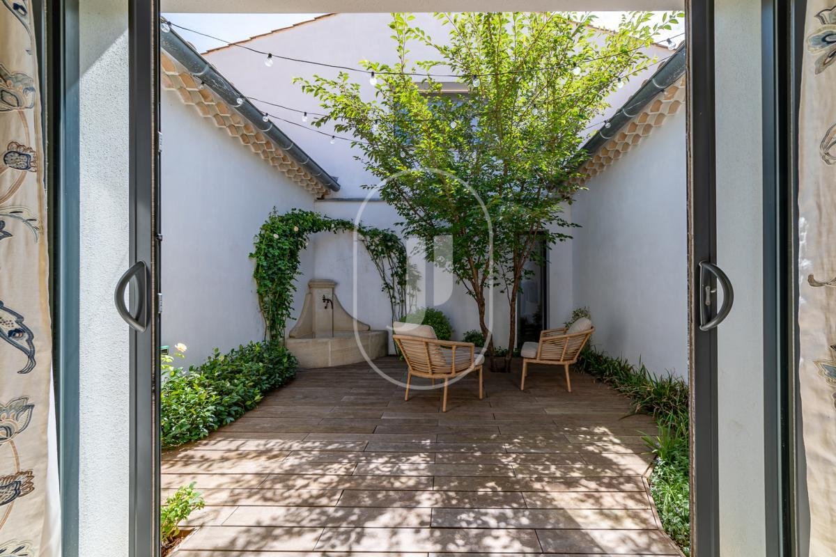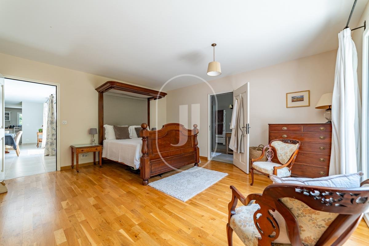 Der Nachtbereich umfasst eine raffinierte Master-Suite, ein Gästezimmer mit eigenem Bad und ein geräumiges Büro. Jedes Detail wurde sorgfältig bedacht: maßgefertigte englische Küche, hochwertige Bäder, beeindruckende Deckenhöhen und ein reversibles Heizpumpensystem. Entworfen mit Nachhaltigkeit im Sinn, verfügt die Immobilie über einen Energieausweis der Klasse A, Solarpaneele, thermodynamische Warmwasseraufbereitung und hochwertige natürliche Materialien.