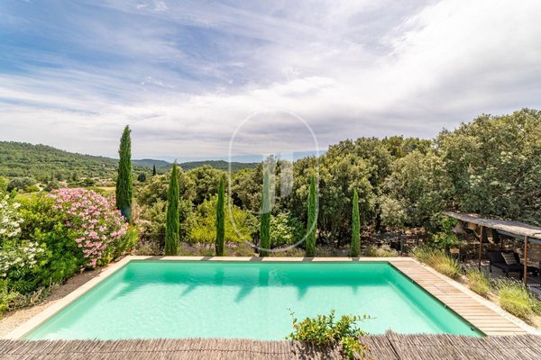 Im Freien bieten die 5.500 qm Grundstück eine Vielzahl von Ruhezonen unter ausgereiften Steineichen, einen Gemüsegarten, ein privates Waldstück und einen diskreten Poolbereich, der von der Umgebung abgeschirmt ist.