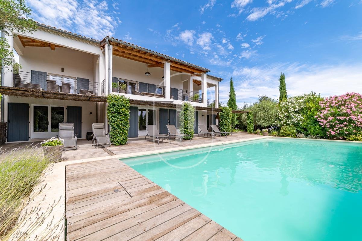 Zwischen Uzès und Goudargues, im Herzen einer erhaltenen Naturlandschaft, vereint diese zeitgenössische Villa aus dem Jahr 2016 auf meisterhafte Weise Raffinesse, Komfort und Energieeffizienz. Mit fast 400 qm Wohnfläche zeichnet sie sich durch großzügige Proportionen und eine Architektur aus, die auf einen harmonischen Lebensstil ausgerichtet ist.