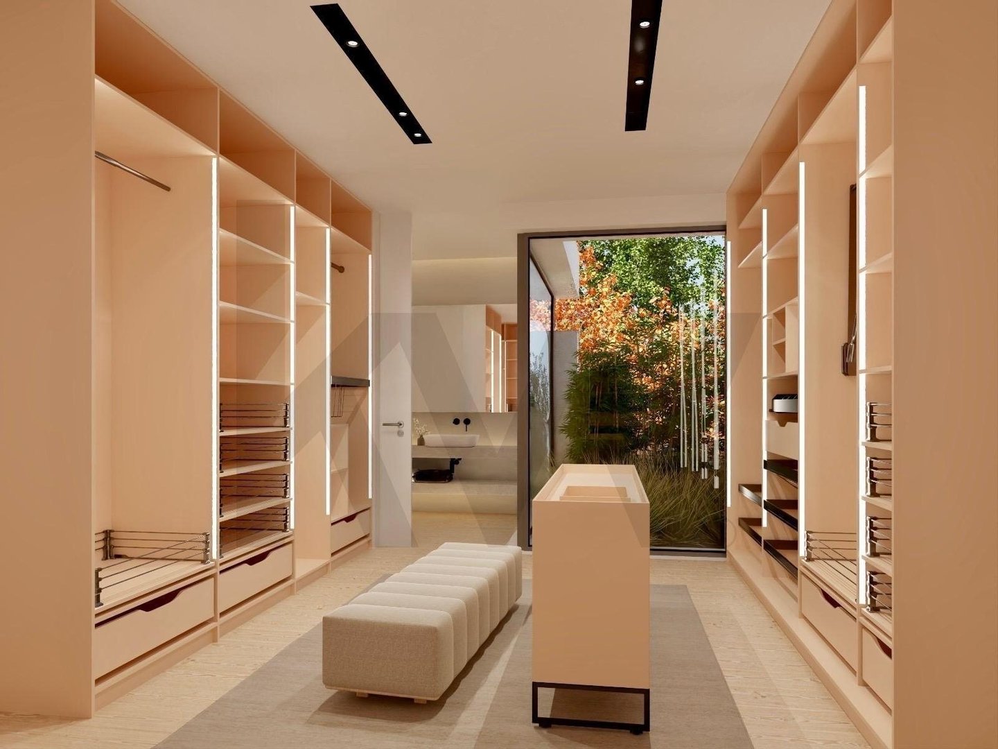 Insgesamt umfasst das Haus sechs Suiten, verteilt auf Erdgeschoss, obere Etage und separaten Anbau.