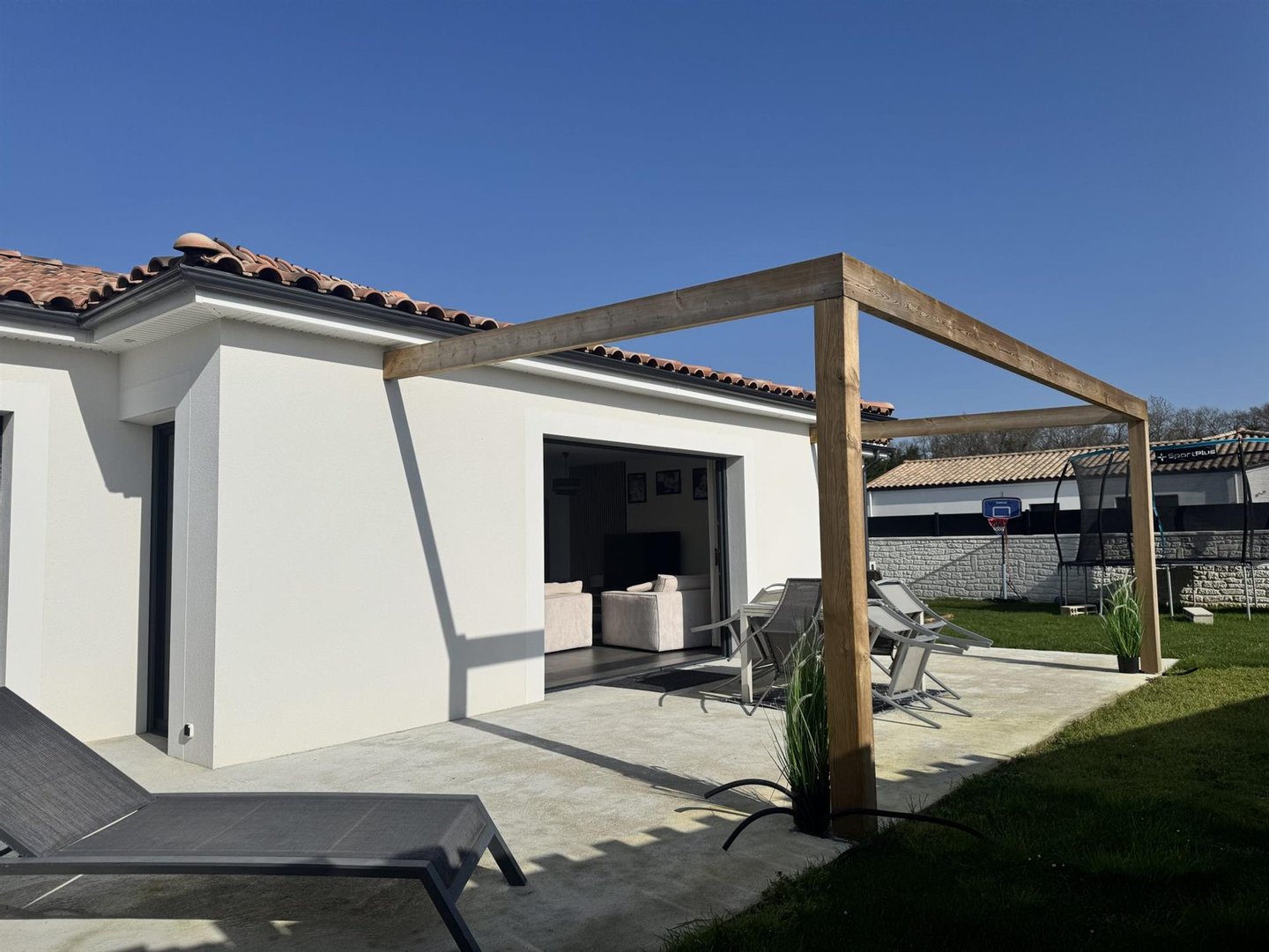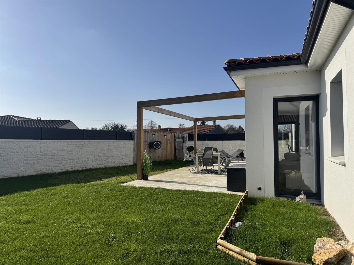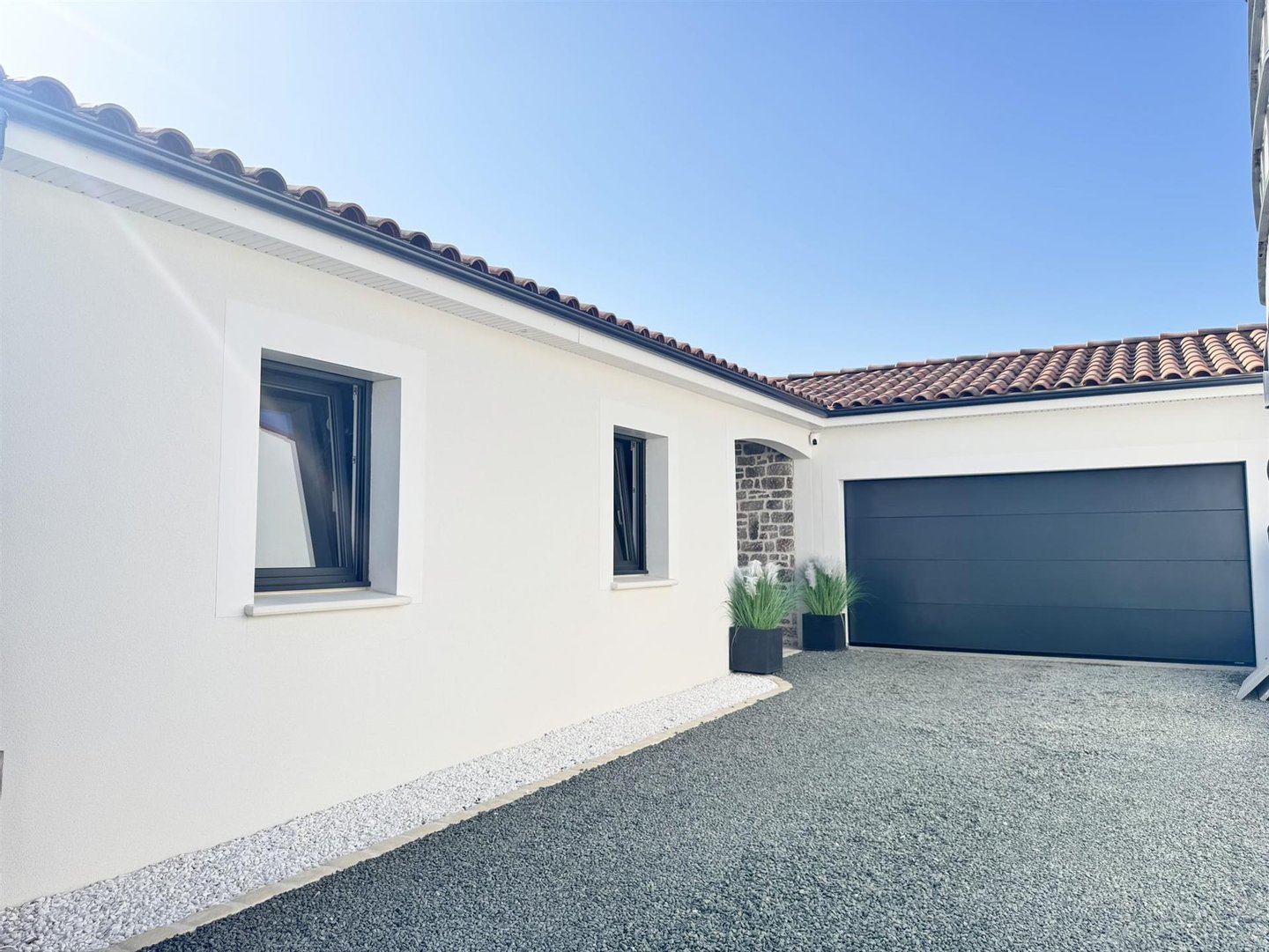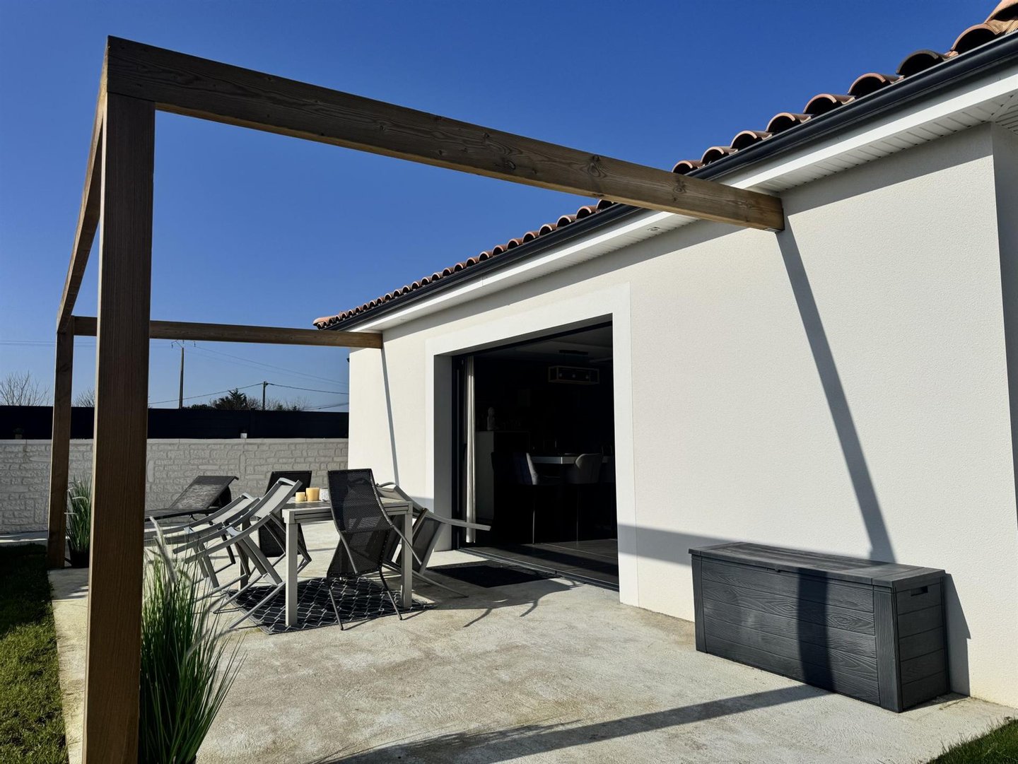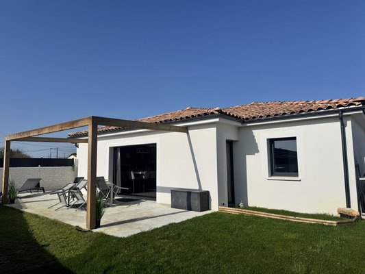 Le Chay – Nur 5 km von Saujon und seinen Geschäften entfernt und 13 km von den Stränden der Royan-Region, wird dieses wunderschöne, 2021 erbaute, komplett ebenerdige Haus Sie durch seine Qualität und Ausstattung begeistern! Auf ca. 120 m² Wohnfläche