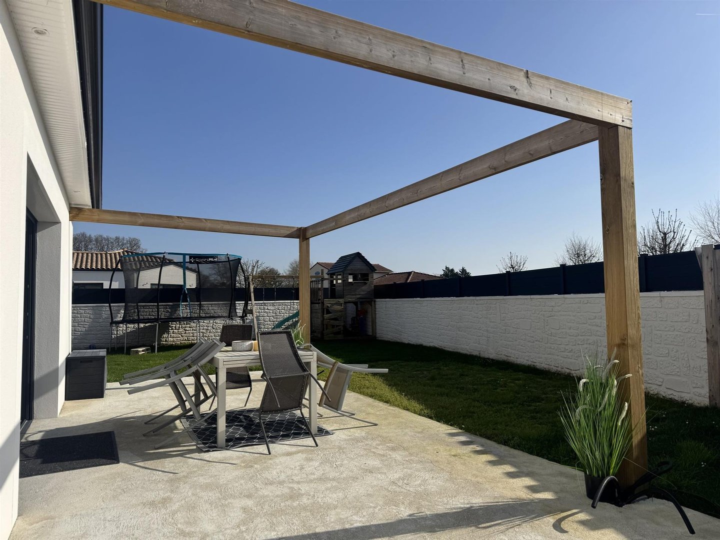 Le Chay – Nur 5 km von Saujon und seinen Geschäften entfernt und 13 km von den Stränden der Royan-Region, wird dieses wunderschöne, 2021 erbaute, komplett ebenerdige Haus Sie durch seine Qualität und Ausstattung begeistern! Auf ca. 120 m² Wohnfläche verfügt es über eine Diele mit separatem WC und Handwaschbecken, einen hellen Wohnbereich von 42 m² mit vollständig eingerichteter und ausgestatteter Küche, der dank breiter Glastürverkleidungen auf eine angenehme, nach Süden ausgerichtete Terrasse führt. Der Schlafbereich umfasst vier Schlafzimmer, darunter eine Elternsuite mit Ankleidezimmer, Badezimmer und WC, sowie ein Arbeitszimmer und ein zweites Bad mit WC. Eine Speisekammer vervollständigt das Ganze. Die Garage über 32 m² mit motorisiertem Tor von 4 Metern bietet idealen Platz zum Parken eines Fahrzeugs oder für ausreichenden Stauraum. Dieses hübsche Haus befindet sich auf einem vollständig eingezäunten Rasenstück von 450 m² mit Mauerwerk, Tor und Parkmöglichkeiten. Suchen Sie ein modernes und komfortables Zuhause? Ein wahrer Augenschmaus, den es zu entdecken gilt! = Finden Sie die Anzeige und weitere Fotos auf unserer Agentur-Website bonnenouvelleimmobilier.fr! Nebenkosten inklusive von 4,16% TTC zugunsten des Käufers. Preis ohne Nebenkosten 385.000. DPE in Bearbeitung. Informationen zu Risiken, denen diese Immobilie ausgesetzt ist, finden Sie auf der Géorisques-Website.