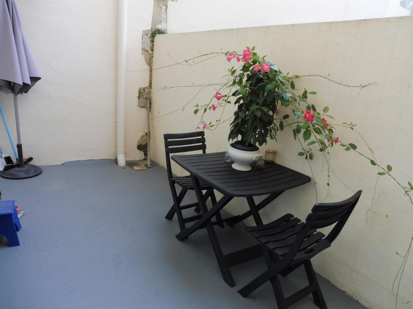 3. Obergeschoss: Zimmer, überdachte Terrasse, kleiner Garten und Vorhof.