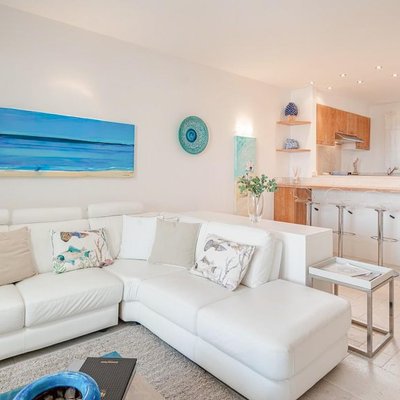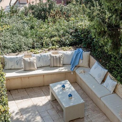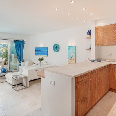 Mit einer Fläche von 92 Quadratmetern erstreckt sich die Wohnung über zwei Ebenen und umfasst drei Zimmer sowie drei Badezimmer. Die Innenräume, die mit zeitgemäßem und minimalistischem Design renoviert wurden, sind darauf ausgelegt, Komfort und Eleganz zu maximieren. Im Erdgeschoss befindet sich ein großer offener Raum, der Wohnbereich, die offene Küche und der TV-Bereich beherbergt, während die großen Fenster auf eine überdachte Terrasse mit atemberaubendem Blick aufs Meer führen. Im Obergeschoss bieten zwei Doppelschlafzimmer mit eigenem Bad ultimative Privatsphäre und Entspannung, wobei eines der Schlafzimmer einen privaten Balkon mit Blick auf den Hafen bietet. Der private Garten und die Terrasse mit eingebautem Sofa vervollständigen das Angebot an Außenbereichen – perfekt für entspannte Momente oder Gäste.