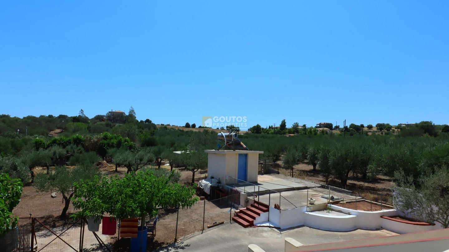Das 2.365 m² große Grundstück umfasst eine Klärgrube. Es verfügt über eine große Wasserzisterne (Tank) mit einem Fassungsvermögen von 60 Kubikmetern sowie ein separates Außenbad/WC mit Solarboiler. Außerdem stehen auf dem Grundstück 50 Olivenbäume und ein Bohrloch mit sehr gutem Wasser, was eine vollständige Wasserversorgung gewährleistet.