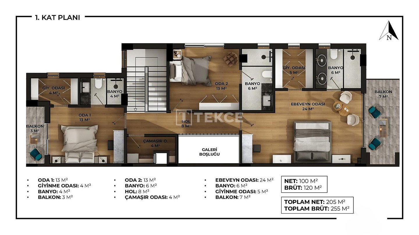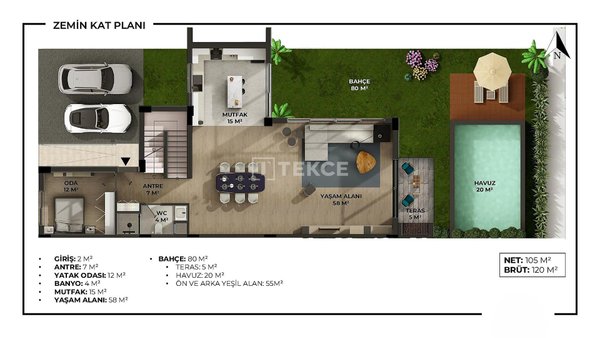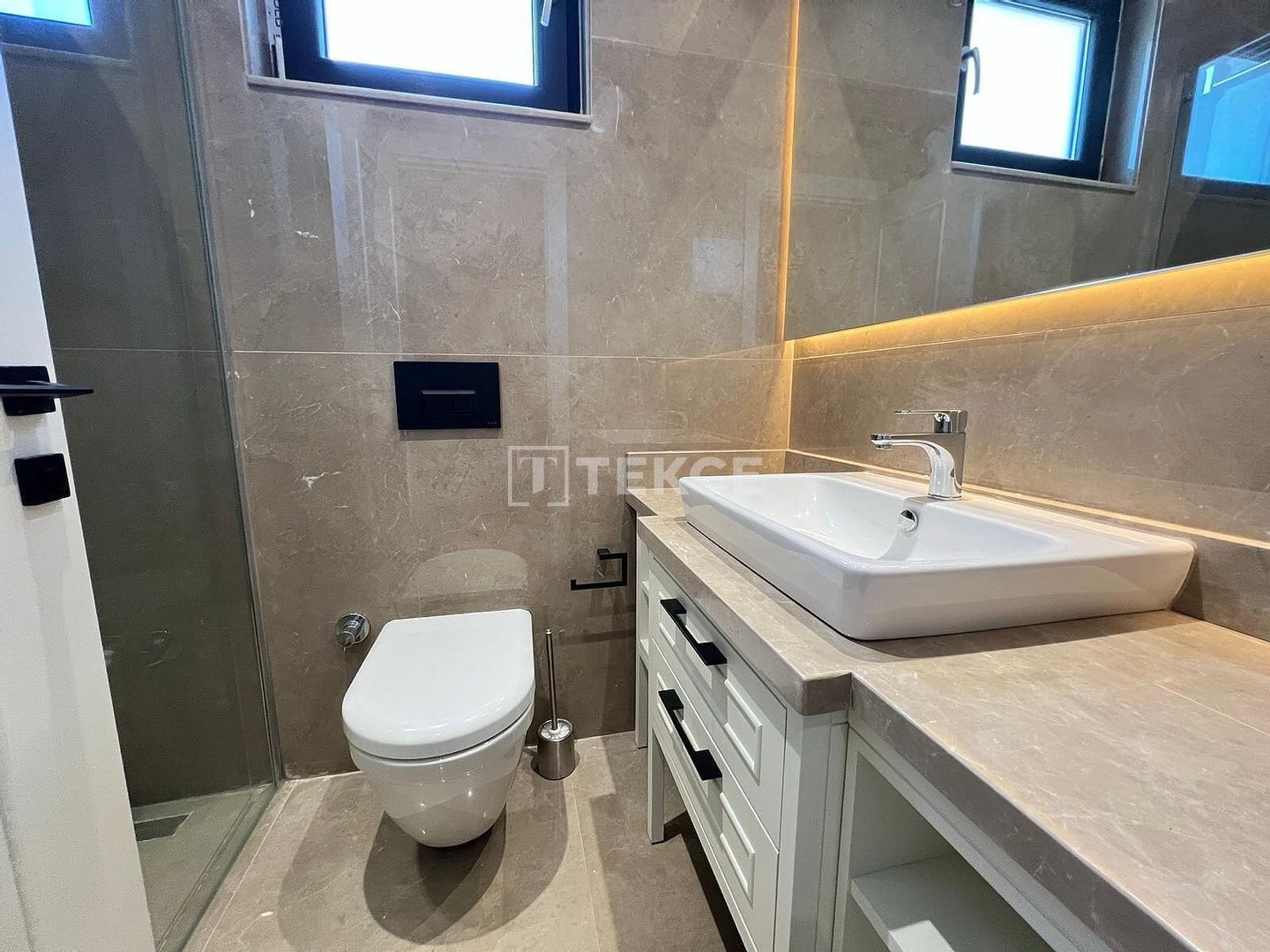 Villa mit privatem Garten und Pool in Döşemealtı, Antalya & 13 Döşemealtı in Antalya ist ein prestigeträchtiger Stadtteil, der für seinen ruhigen Lebensstil, seine saubere Luft und seine von Villen geprägten Wohngebiete bekannt ist, obwohl er in der Nähe des Stadtzentrums liegt. Mit seiner geringen Bebauungsdichte, den breiten Straßen und der naturfreundlichen Atmosphäre bietet er ein ideales Wohnumfeld für diejenigen, die Einfamilienhäuser und Residenzen in Wohnanlagen bevorzugen an. In den letzten Jahren hat Döşemealtı mit seinen Entwicklungsprojekten und seinem steigenden Investitionswert Aufmerksamkeit erregt, was es sowohl für das Wohnen als auch für Immobilieninvestitionen attraktiv macht. & 13 Die Villa zum Verkauf in Antalya befindet sich 150 m von der Bushaltestelle, 3,2 km vom Orfe Ferienort, 6 km vom Güver-Wasserfall, 8,4 km vom Antalya Stadtkrankenhaus, 9,2 km von der Antalya Wissenschaftsuniversität, 12,2 km vom Özdilek Einkaufszentrum, 15,4 km vom MarkAntalya-Einkaufszentrum, 16,4 km vom Konyaaltı-Strand, 19,8 km von Kaleiçi (Altstadt) und 29,4 km vom Flughafen Antalya entfernt. & 13 Das Projekt, in dem sich die Villa befindet, umfasst insgesamt 14 Villen. Die Villa verfügt über einen eigenen Eingang, einen offenen Parkplatz für zwei Autos, einen separaten Garten, eine Gartenterrasse, einen privaten Pool und ein zentrales Satelliten-TV-System. & 13 Die Villa mit 4 Schlafzimmern umfasst ein Wohnzimmer, eine offene Küche, 3 Badezimmer en suite, 1 Gemeinschaftsbad, 2 Ankleidezimmer, eine Waschküche, eine Terrasse und 2 Balkone. & 13 Die Villa ist mit Ausstattungsmerkmalen versehen, die den Komfort erhöhen, darunter eine zentrale Klimaanlage im Wohnzimmer und in der Küche, eine Klimaanlageninfrastruktur in allen Zimmern, eingebaute Küchengeräte, Fußbodenheizung, eine Garderobe und LED-Beleuchtung.& 13 AYT-04887