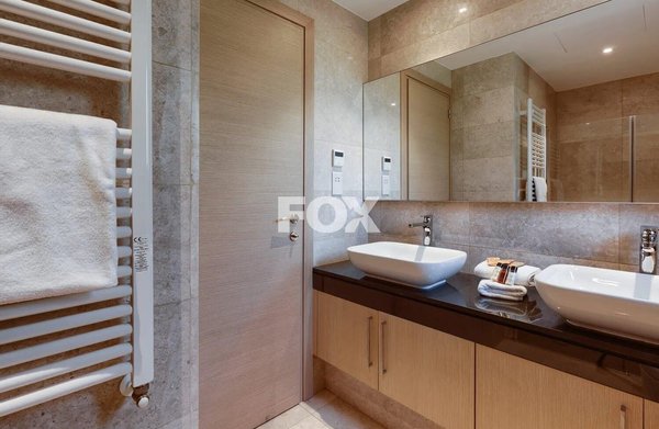 Ein geschwungener Weg führt zum grandiosen Eingang, wo das Innere mit neutralen Farbtönen beeindruckt, die durch geschmackvolle Farbtupfer und hochwertige moderne Ausstattungen ergänzt werden.