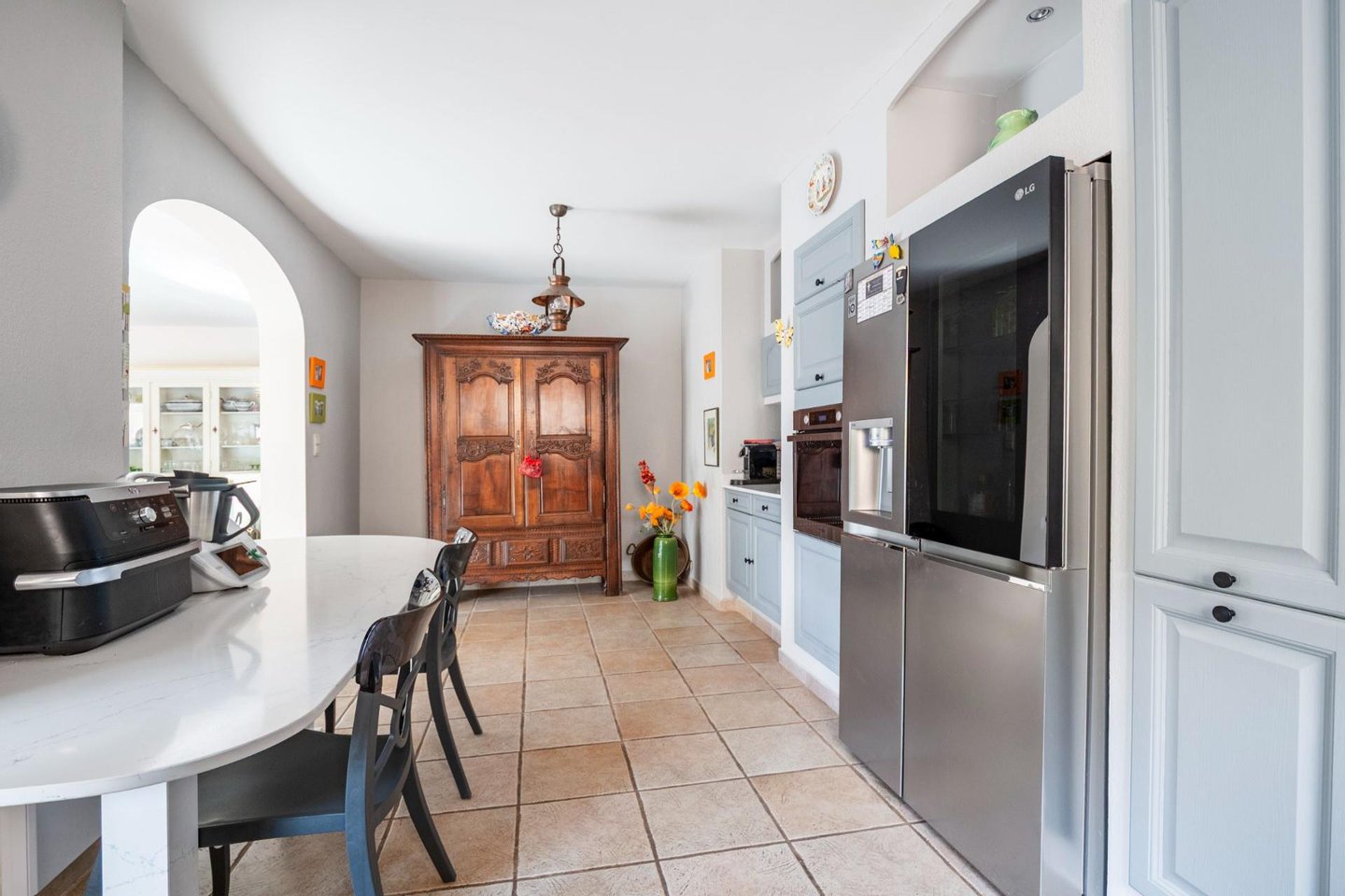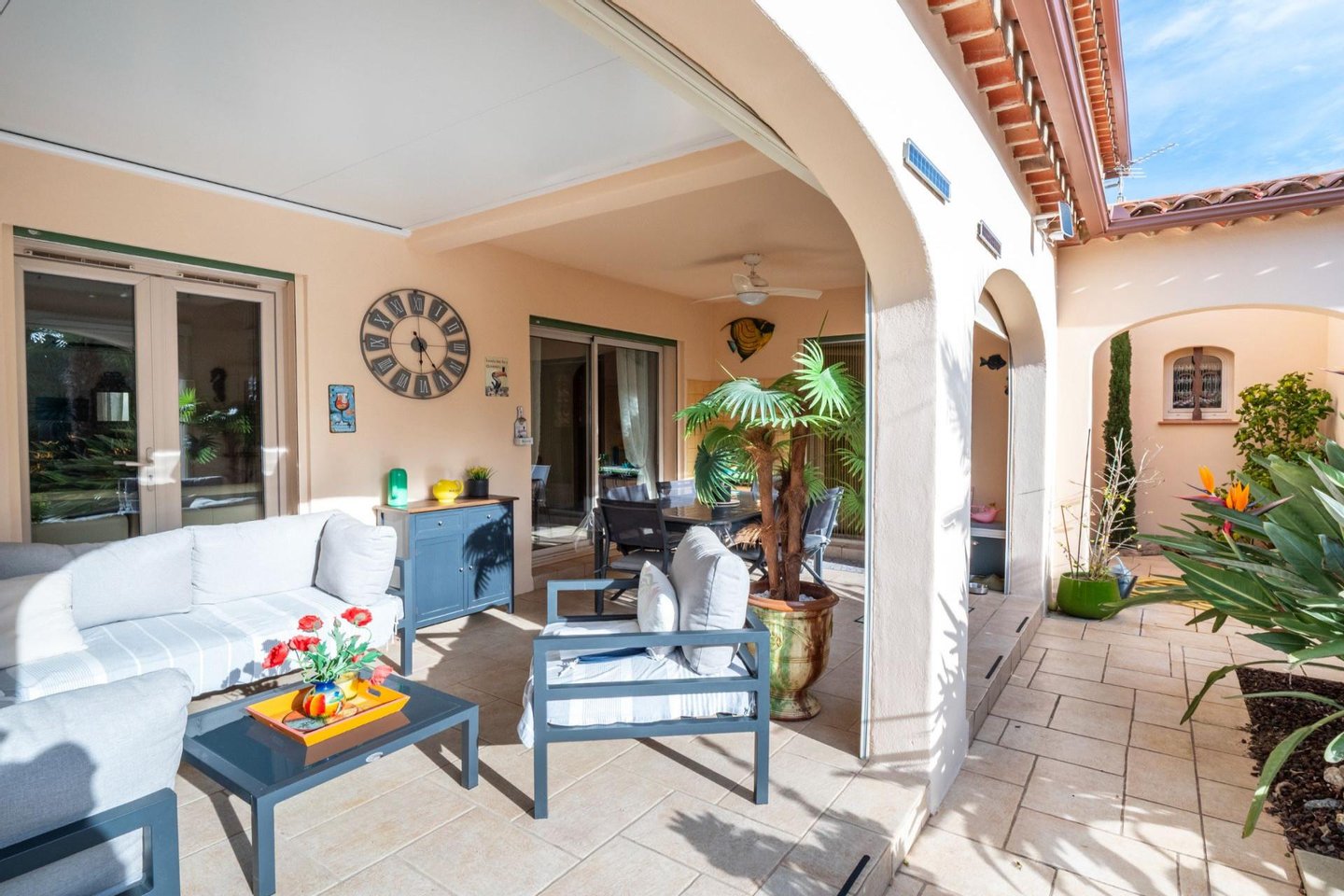 In einer ruhigen und privilegierten Umgebung gelegen, befindet sich diese hervorragende romanische Villa im mediterranen Stil mit einer Wohnfläche von etwa 190 m² auf einem bewaldeten und perfekt gepflegten Grundstück von 1.048 m². Ein wunderschöner Eingang, ein großes, helles Wohnzimmer mit einem Kamin, eine überdachte Terrasse mit Blick auf das von Palmen umgebene Schwimmbad, eine ausgestattete, freundliche und funktionale Küche, die zum Wohnzimmer hinausgeht und von der Terrasse aus zugänglich ist. 2 Schlafzimmer, eines mit Umkleidezimmer, 2 Duschräume, ein Nebengebäude mit 1 separatem Schlafzimmer, ideal für Gäste oder für einen freien Beruf. Oben, ein Badezimmer,