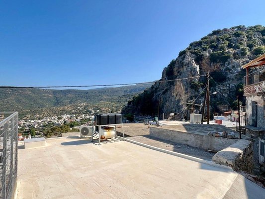 Zweistöckiges kretisches Haus mit Blick ins Tal. Kritsa